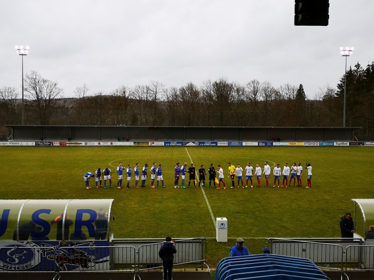 An der éischter Halschent kruten d’Spectateuren alles anescht wéi en animéierte Match ze gesinn wëll vill Golchancen gouf et net ze gesinn. An der 38. Minutt konnt de Racing awer e bësse glécklech mat 1:0 a Féierung goen. Den Hennetier huet eng Flank geschloen, déi ass allerdéngs ëmmer méi laang ginn an ass am laangen Eck am Gol ageschloen.