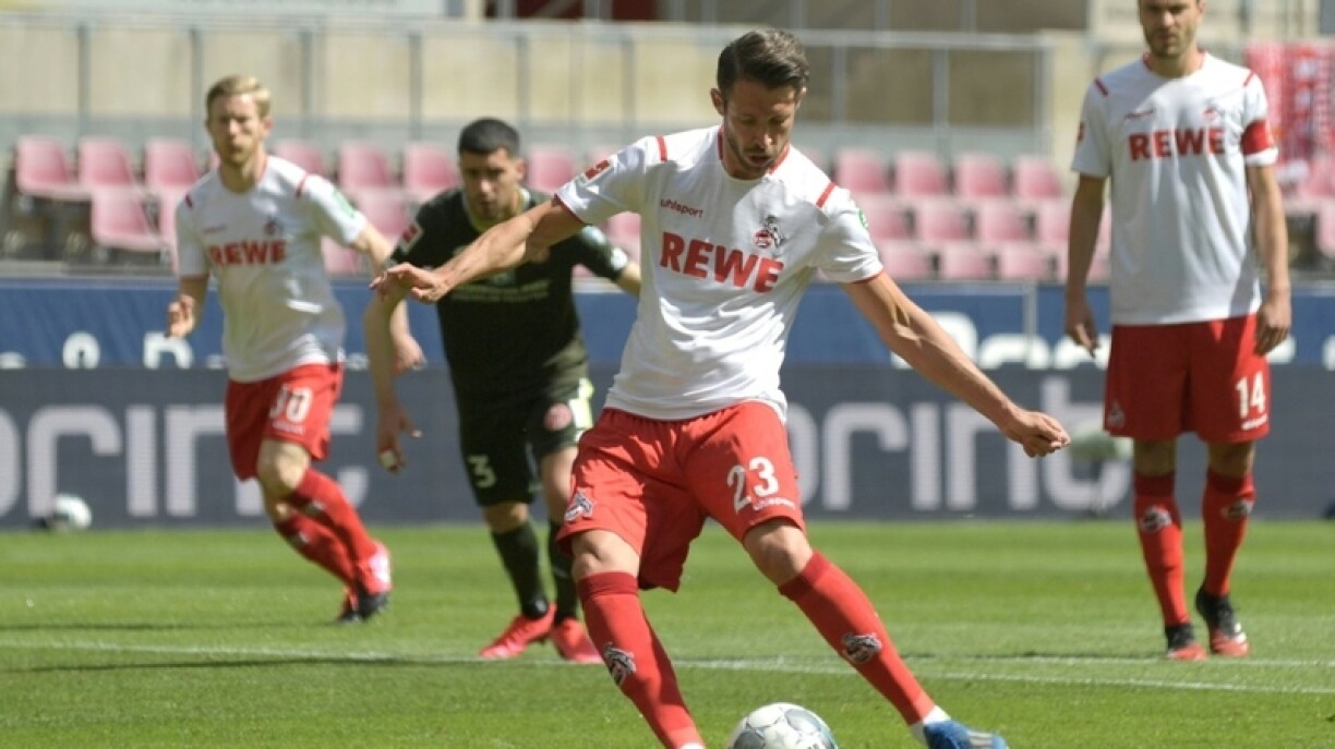 Düsseldorf huet d’Kölner Ekipp am Rheinderby fréi ënner Drock gesat a gepresst, an der éischter Hallschent war et d’Lokalekipp déi liicht méi Ballbesëtz Opweises hat. Am grousse Ganze war et en ausgeglachene Match mat wéineg Golchancen, ma d’Gäscht hu sech e Stéck méi aktiv gewisen. Mat engem 0:0 sollt et awer net an d’Paus goen. An der 41. Minutt war et de Karaman, deen nom Zouspill vum Skrzybsky d’Féierung fir d’Fortuna markéiert huet. Dobäi krut hien nach eng Hëllef vum Leistner, deen de Ball nach liicht ofgefälscht an dem Golkipp domat keng Chance gelooss huet.
