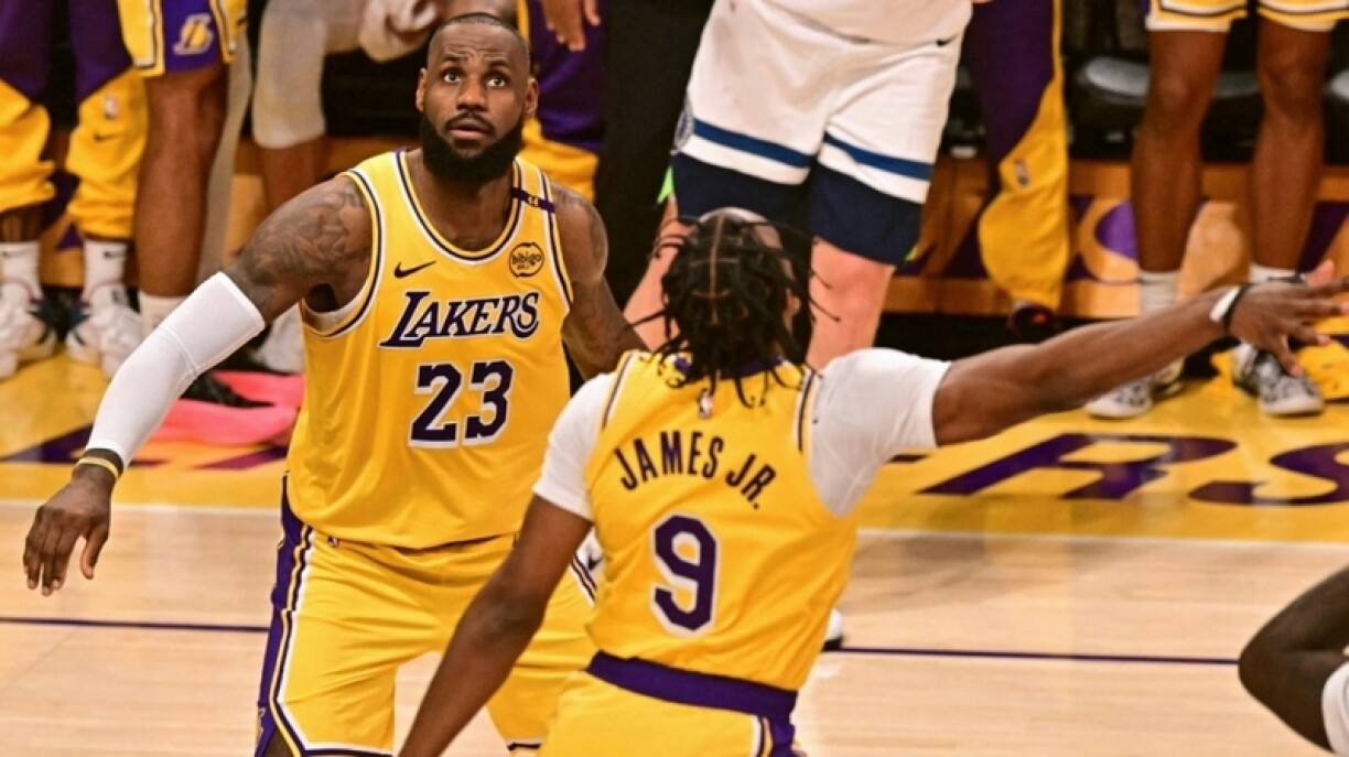 Bei der 110:103-Victoire fir den Optakt vun der Saison vun den LA Lakers géint Minnesota Timberwolves stoung net just de Basket selwer am Vierdergrond, nämlech ee vu senge gréisste Staren iwwerhaapt: De Lebron James. Well bei dëser Partie stoung nach en aneren James um Terrain. Nieft der Nummer 23 an dem Numm “James” um Réck war och bei der Nummer 9 “James JR.” ze liesen: Papp a Jong hunn also zesummen an der NBA gespillt.
