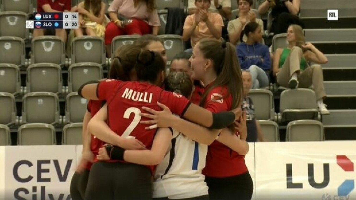Fir d’Ekipp vum Fabio Aiuto sollt et awer och am 8. Match déi 8 Néierlag ginn. Lëtzebuerg huet virun allem am 1. Saz gutt matgehalen, sollt dësen dann awer nach mat 17:25 verléieren. Slowenien war iwwert de ganze Match ze staark, a gewannen sou och de Saz 2 a 3 (25:16, 25:17). D’Rout Léiwinne verléieren deemno um Sonndeg den Owend mat 0:3 géint Slowenien.