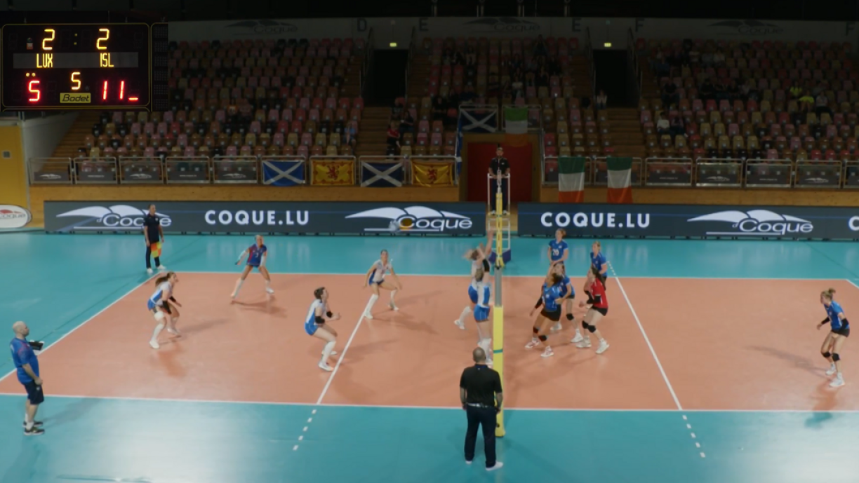 Lëtzebuerg spillt domat e Sonndeg de Match ëm Plaz 3, deen um 15.00 Auer an der Coque ugepaff gëtt. Do treffe si op Malta, déi an der éischter Halleffinall 1:3 (21:25, 25:12, 20:25, 15:25) géint Schottland de Kierze gezunn haten. D’Finall heescht deemno Schottland géint Island an ass fir 17.00 Auer ugesat.