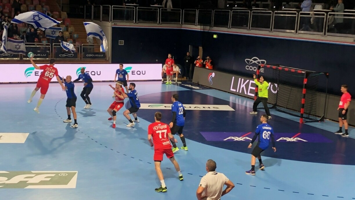 De Mika Herrmann, dee vun der 17. Minutt un am Gol stoung, konnt Lëtzebuerg mat enger Rei flotte Paraden am Match halen a vir hunn de Loic Kaysen an de Lé Biel de Ball am Filet ënnerbruecht. Israel konnt mat der leschter Aktioun an den éischten 30 Minutten nach de 15:14 markéieren.