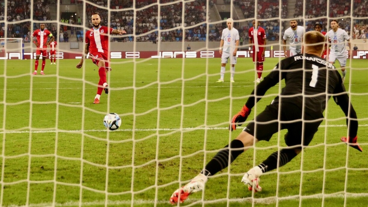 No 24 Minutten hat de Martins d’Chance, fir op 2:0 z’erhéijen, ma säi Schoss ass just knapp laanscht de Gol gaangen. Kuerz virum Säitewiessel war Island zu zwou Chance komm, ma de Moris konnt d’Flank vum Finnbogason offänken respektiv konnt d’Defense de Schoss vum Thorsteinsson ofwieren.