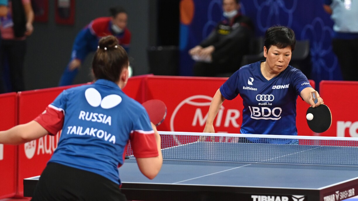 D’Ni Xia Lian konnt sech am éischte Match mat 3:1 géint d’Maria Tailakova behaapten. Mat enger staarker a konzentréierter Leeschtung hat d’Sarah de Nutte d’Féierung mat enger 3:2-Victoire ausgebaut. D’Tessy Gonderinger huet sech am drëtte Match misse mat 0:3 géint d’Yana Noskova geschloe ginn. Ma zum Schluss huet d’Ni Xia Lian näischt ubrenne gelooss a sech mat 3:0 géint d’Polina Mikhailova duerchgesat.