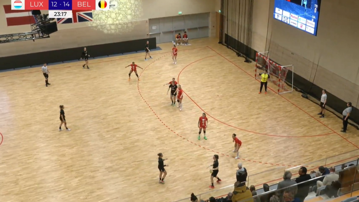 An der 1. Hallschent hunn d’Rout Léiwinne gutt géint de Favorit aus der Belsch matgehalen. No 8 Minutte stoung et 3:3 éier d’Gäscht de Rhythmus an d’Luucht geschrauft hunn. Nom 5:10 aus Siicht vun de Lëtzebuergerinnen no 13 Minutten huet et awer net gutt ausgesinn. D’Spillerinnen aus dem Grand-Duché hu sech awer nees erkrabbelt a konnten de Réckstand lues a lues ophuelen. An der 24. Minutt war ee beim 12:14 nees op zwee Goler erukomm, an der Paus war d’Belsch beim 15:14 just ee Gol am Avantage.