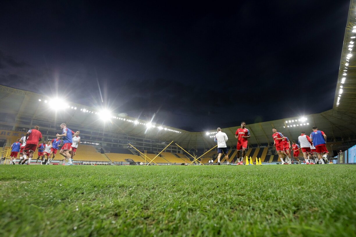 Wéi de Luc Holtz de Wues vum Hristo Botv-Stadion virum Training analyséiert huet, huet hie misste feststellen, datt dësen an engem ganz schlechten Zoustand ass.