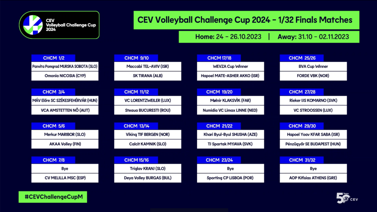 De VC Luerenzweiler kritt mat Steaua Bukarest ze dinn, iwwerdeems de VC Stroossen géint Rieker IJS Komarno untriede muss.