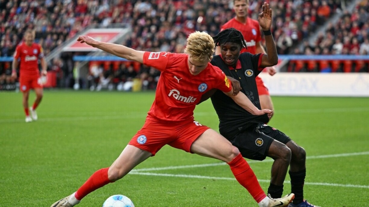 Leverkusen huet géint den Opsteiger Holstein Kiel just 2:2 gespillt. An der 1. Hallschent war et awer quasi eng Partie op ee Gol. Schonns no 8 Minutten hat den aktuelle Champion de Wee zweemol an de Filet fonnt. An der 4. Minutt huet de Boniface den 1:0 markéiert, den Hofmann huet 4 Minutte méi spéit erhéicht. D’Heemekipp huet sech eng Chance no der anerer erausgespillt, den nächste Gol ass awer fir Kiel gefall. Kuerz virun der Paus huet de Geschwill de Ball no engem Corner an de Gol gekäppt.