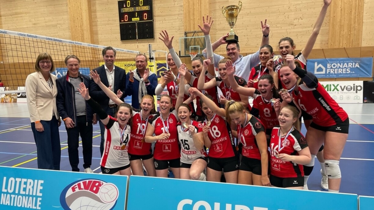 An der Sportshal zu Luerenzweiler stoungen e Sonndeg d’Finallen an der Coupe de Luxembourg um Programm. Bei den Damme geléngt Mamer d’Iwwerraschung a klappt Walfer mat 3:1 (25:16, 10:25, 25:19, 24:26, 15:13).