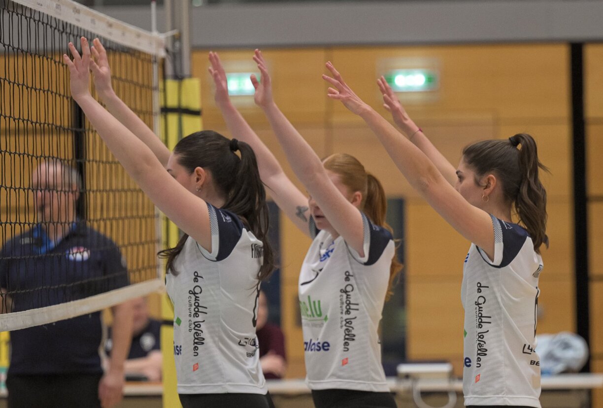 Géigner ass hei genee wéi d’lescht Joer Walfer. D’Nathalie Braas a Co sinn hirer Favoritteroll gerecht ginn an hu sech kloer mat 3:1 (25:18, 25:17, 22:25, 25:13) géint Bartreng duerchgesat.