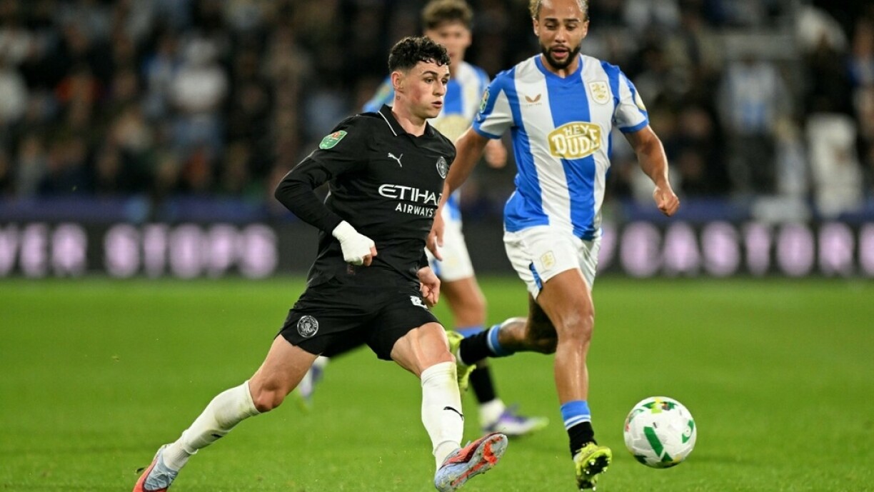 Manchester City wënnt duerch Goler vum Phil Foden an der 18. a vum Savinho an der 74. Minutt auswäerts zu Huddersfield.
