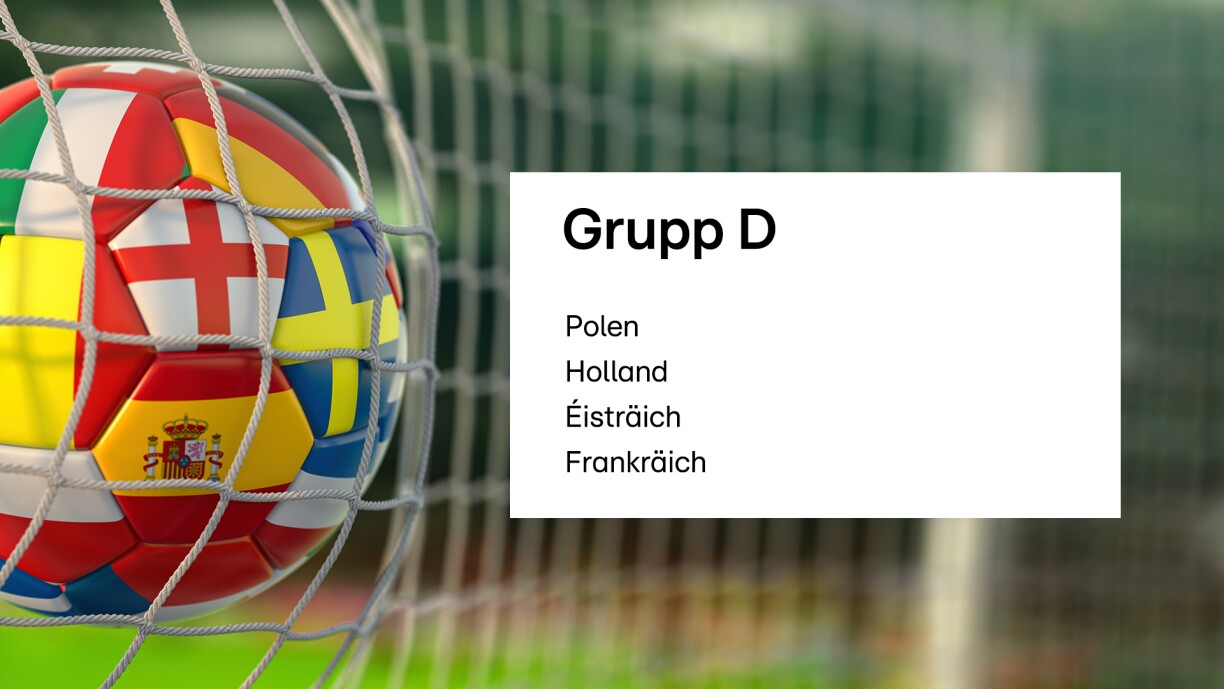 D’Wourecht läit awer nach ëmmer um Terrain an do ass den Optakt am Grupp D e Sonndeg um 15 Auer mat der Partie Polen géint Holland an e Méindeg um 21 Auer spillt Frankräich géint Éisträich.