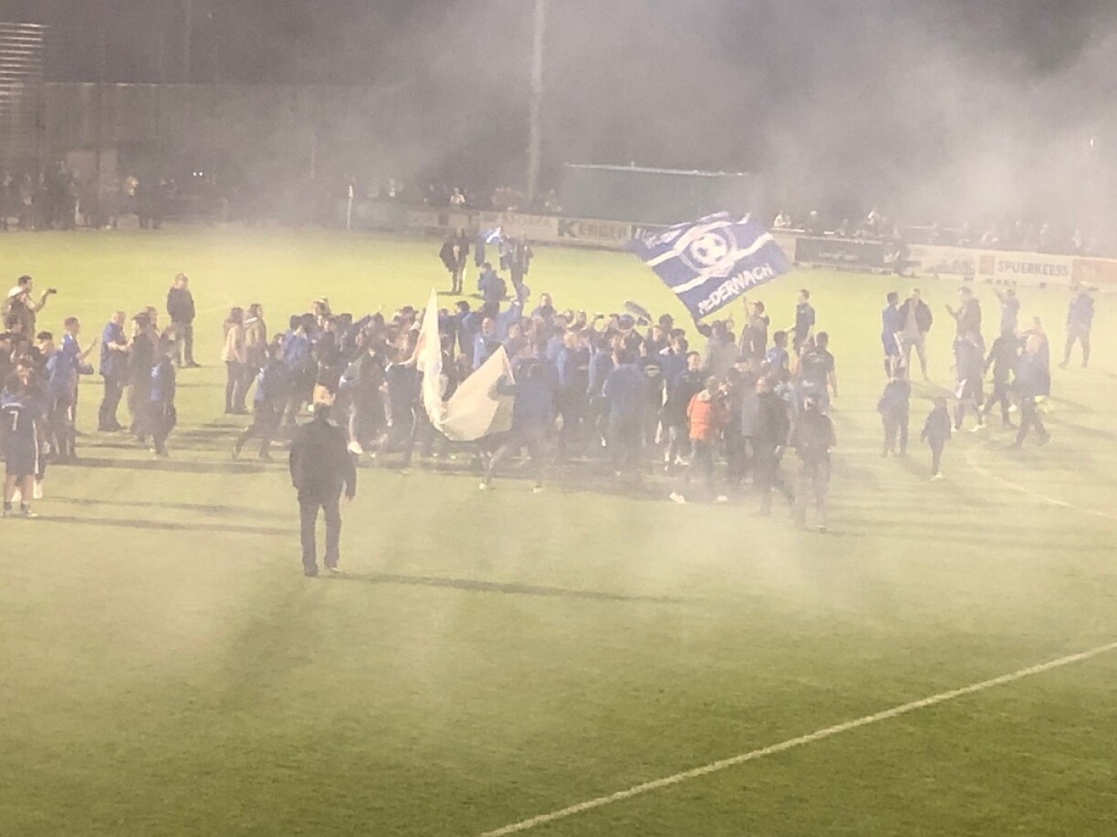 Dat war dann och d’Schlussresultat an esou steigt Miedernach duerch dësen 3:1-Erfolleg an d’Éierepromotioun op. Ierpeldeng muss iwwerdeems de battere Wee an d'1. Divisioun untrieden.