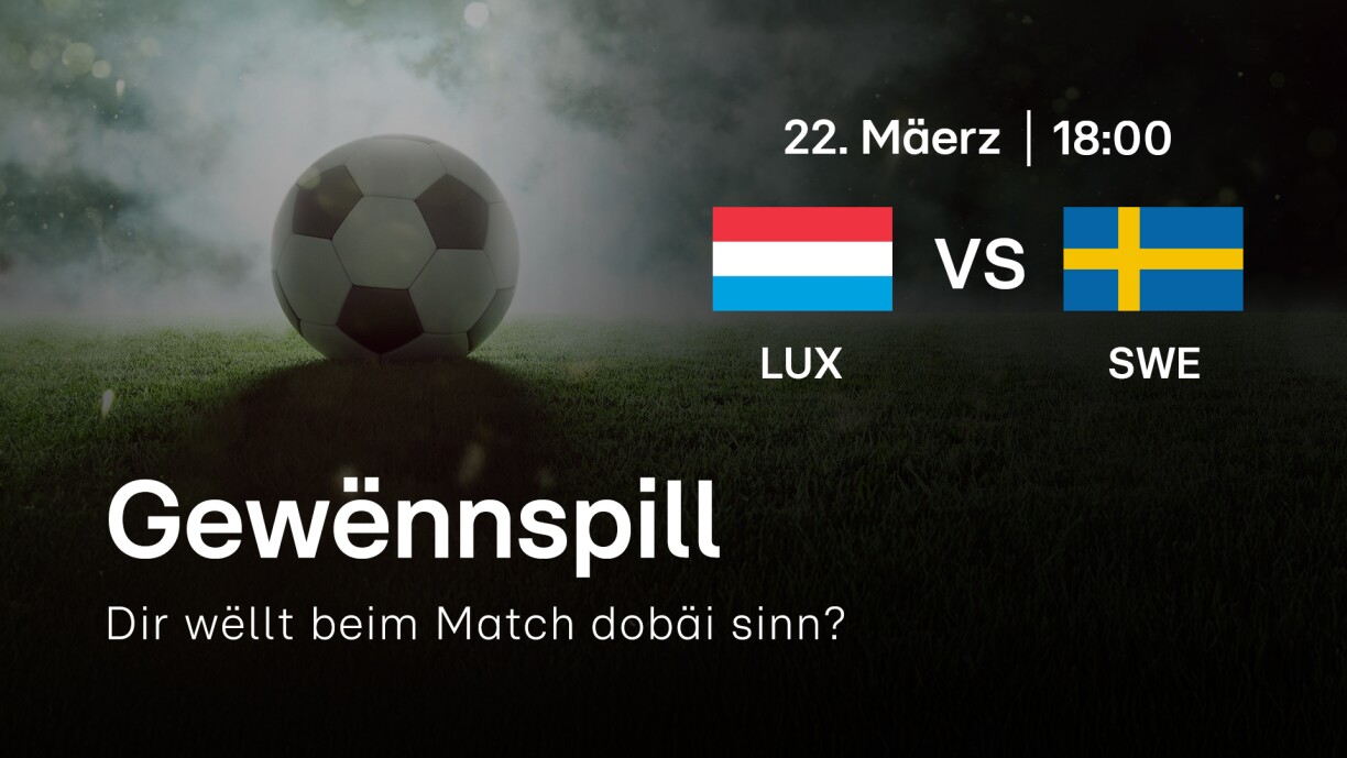 Am Kader vun dësem Match hu mir e klenge Quiz fir Iech preparéiert. Äntwert dofir einfach op dës zwou Froen, a wann Dir op all d’Froe richteg äntwert, kommt Dir an d’Loustrommel, fir eng Koppel Tickete fir de Match Lëtzebuerg - Schweden den 22. Mäerz um 18.00 Auer am Stade de Luxembourg ze gewannen.