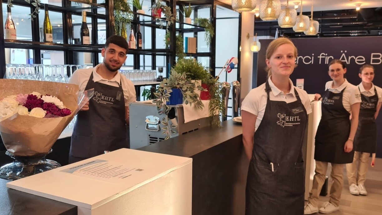 “Mir sinn d’Nationalekipp vun de Serveure soe mer. Mir sinn hei, fir d’Hotelschoul ze representéieren. Fir eis bescht Versioun vun eis ze weisen. Den Accueil vun de Sportler, vun de Ministeren a Politiker. Also ech mengen, besser geet et net. Mir sinn hei the place to be”