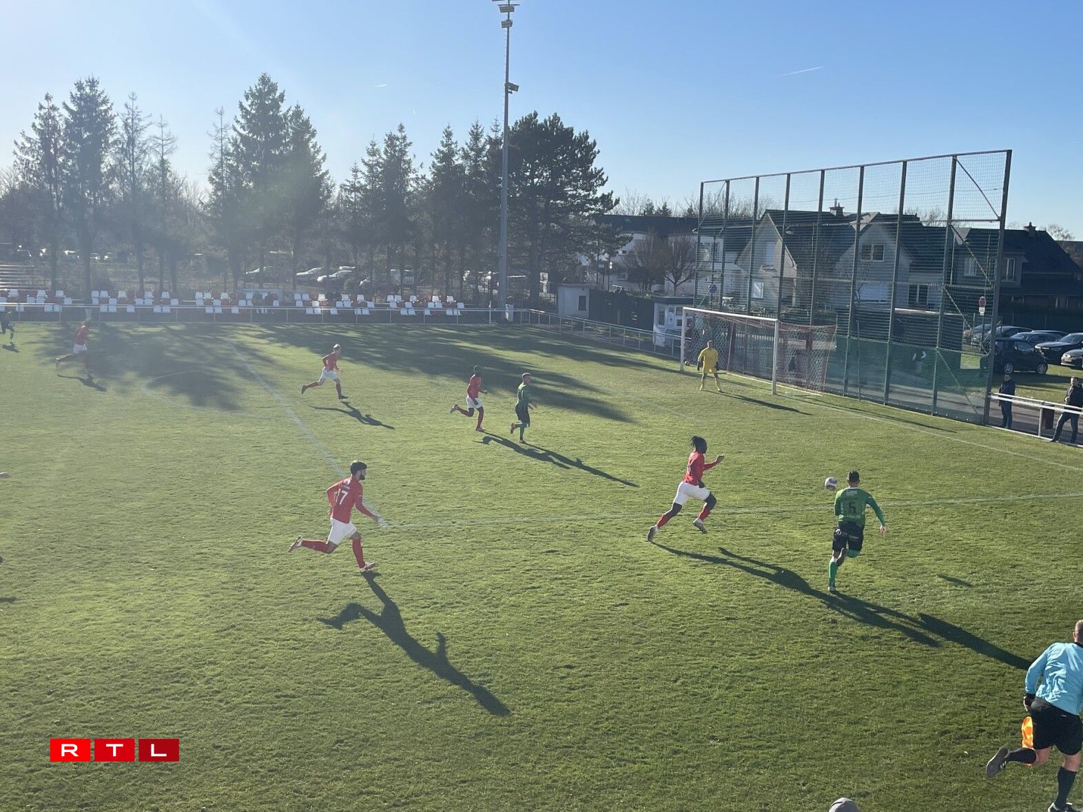 Op der Grenz huet sech d’Jeunesse no engem opreegende Match mat 4:3 géint Hueschtert duerchgesat. No fënnef Goler bannent den éischte 35 Minutte stoung et 3:2 aus der Siicht vun de Gäscht, déi sech ronn 10 Minutte virum Schluss dann awer nach en Eelfemeter gefaangen a mat der leschter Aktioun nach de Match aus der Hand ginn hunn. De Kyei huet der Jeunesse mat sengem Gol an der 93. Minutt déi dräi Punkte geséchert.