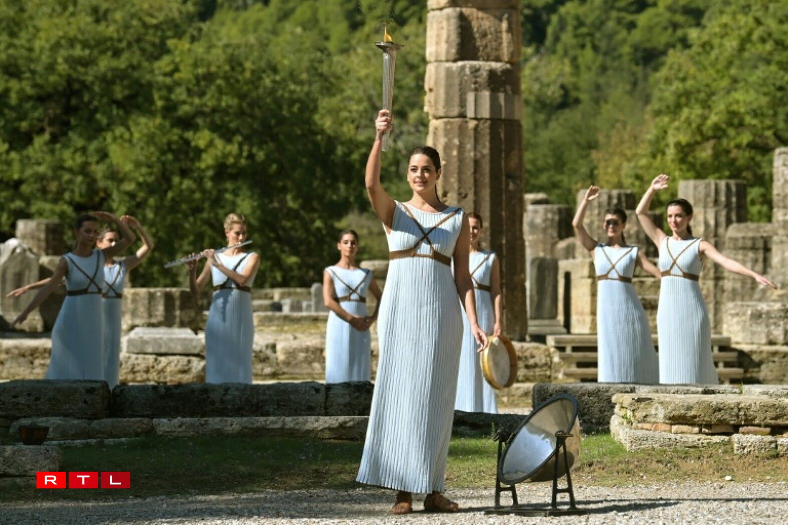 Bei der Zeremonie dobäi waren den IOC-President Thomas Bach, déi griichesch Staatspresidentin Katerina Sakellaropoulou an eng kleng Delegatioun aus China a Griicheland souwéi dem Internationalen Olympesche Comité (IOC). D’Schauspillerin Xanthi Georgiou, déi eng Geeschtlech verkierpert, huet d’Flam géint 11.09 Auer MESZ no aler Traditioun am Tempel vun der Hera mat der Hëllef vun engem Parabolspigel ugefaangen.