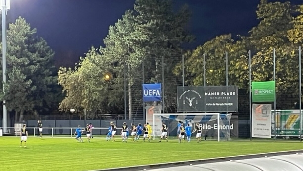 Viru ronn 500 Spectateuren huet d’U19-Ekipp vum Racing sech missen am Retourmatch mat 2:3 géint AIK Stockholm geschloe ginn. No der 0:5 Néierlag a Schweden war d’Zil, sech esou gutt wéi méiglech aus der Affär ze zéien an dat ass de Stater och gelongen. An der éischter Hallschent hate béid Ekippe gutt Golchancen, mä et ass mat engem 0:0 an d’Kabinne gaangen.