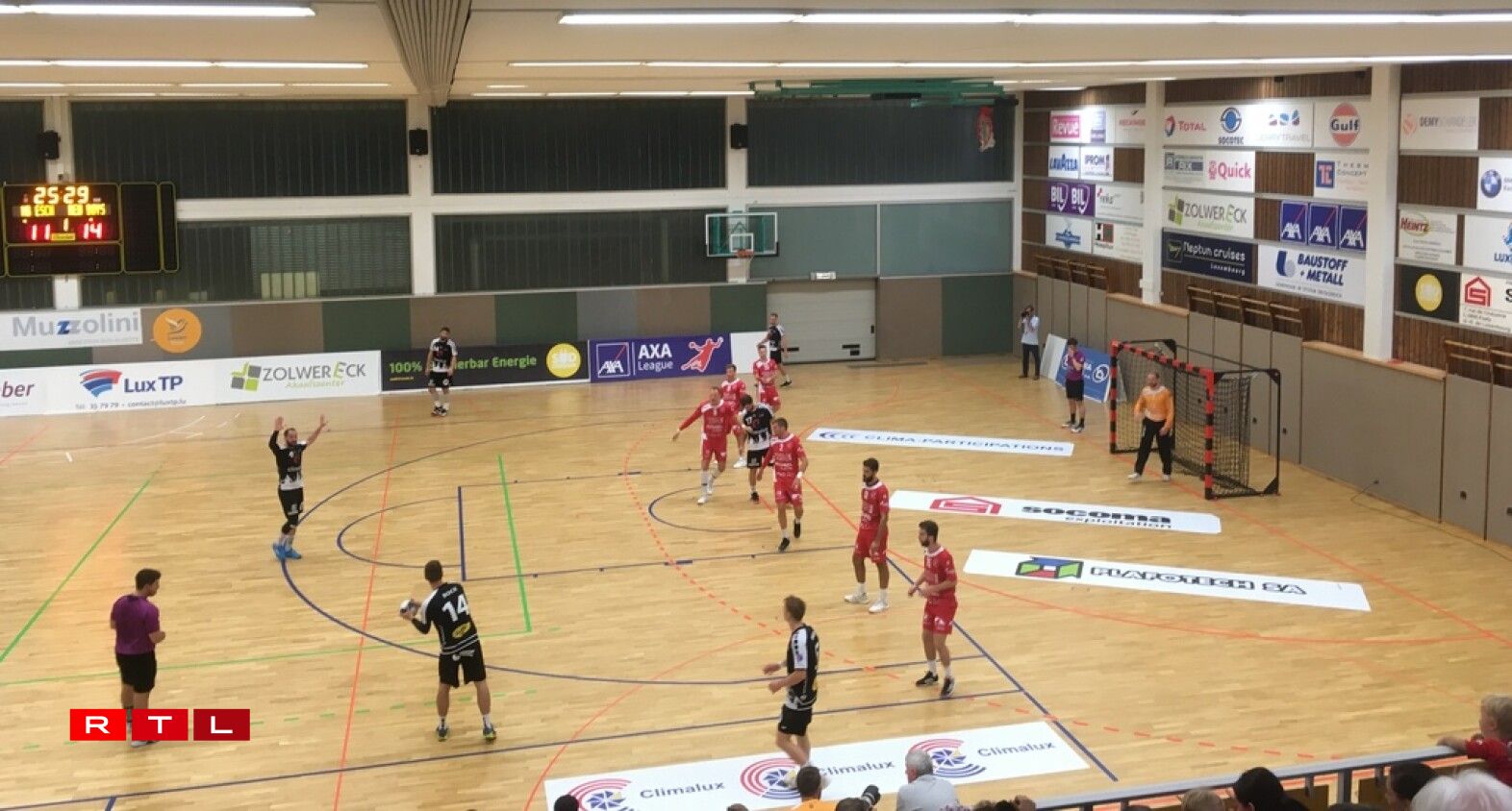 Et war d’Heemekipp, déi besser an de Match koum, d’Féierung awer no 10 Minutten aus der Hand ginn huet. D’Red Boys hu vun deem Ament un an enger ganz intensiver Partie den Toun uginn a si verdéngt mat engem 17:14 an d’Paus gaangen.