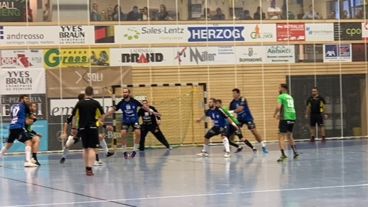 An enger spannender Partie tëscht zwou Ekippen, déi allebéid schonn zwou Victoire um Kont stoen hunn, wollt d’Heemekipp d’Punkte bei sech halen. Ma och den HBD hat sech Chancen ausgerechent, an dee war no enger Véierelstonn op 4 Goler mat 9:5 am Avantage. An och am weidere Verlaf vun der 1. Hallschecht konnt d’Ekipp aus der Forge du Sud een Ecart vun 3-4 Goler halen - 12:9 fir Diddeleng an der Paus.