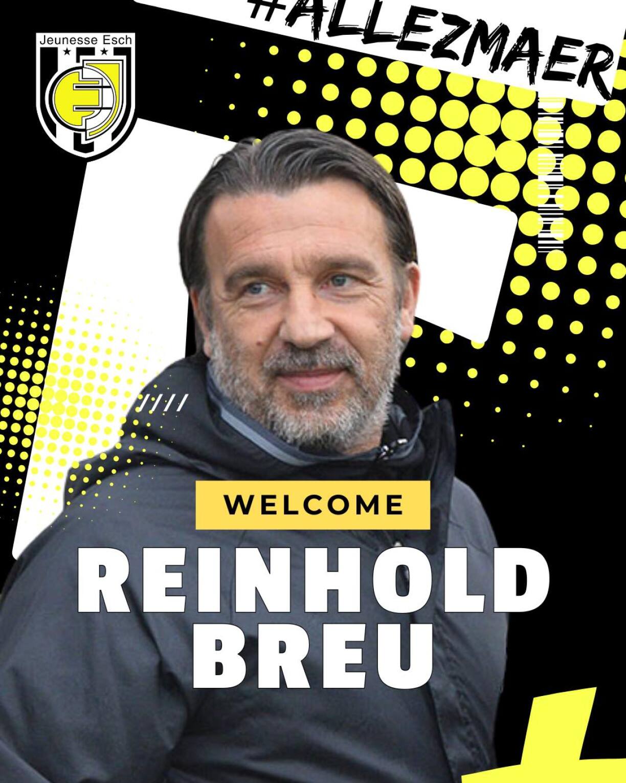 Am Futtball huet d’Escher Jeunesse mam Reinhold Breu en neien Trainer a Generalkoordinator fonnt, wéi den Escher Club op de soziale Medien matdeelt. De 54 Joer alen Däitsche war vun 2011 bis 2021 techneschen Direkter vun der Lëtzebuerger Futtballfederatioun. No enger Statioun als Co-Trainer bei Austria Wien, war de Breu bis Ufank dës Joers ënnert anerem techneschen Direkter an 2022 fir en halleft Joer Interim-Nationaltrainer, a Litauen.