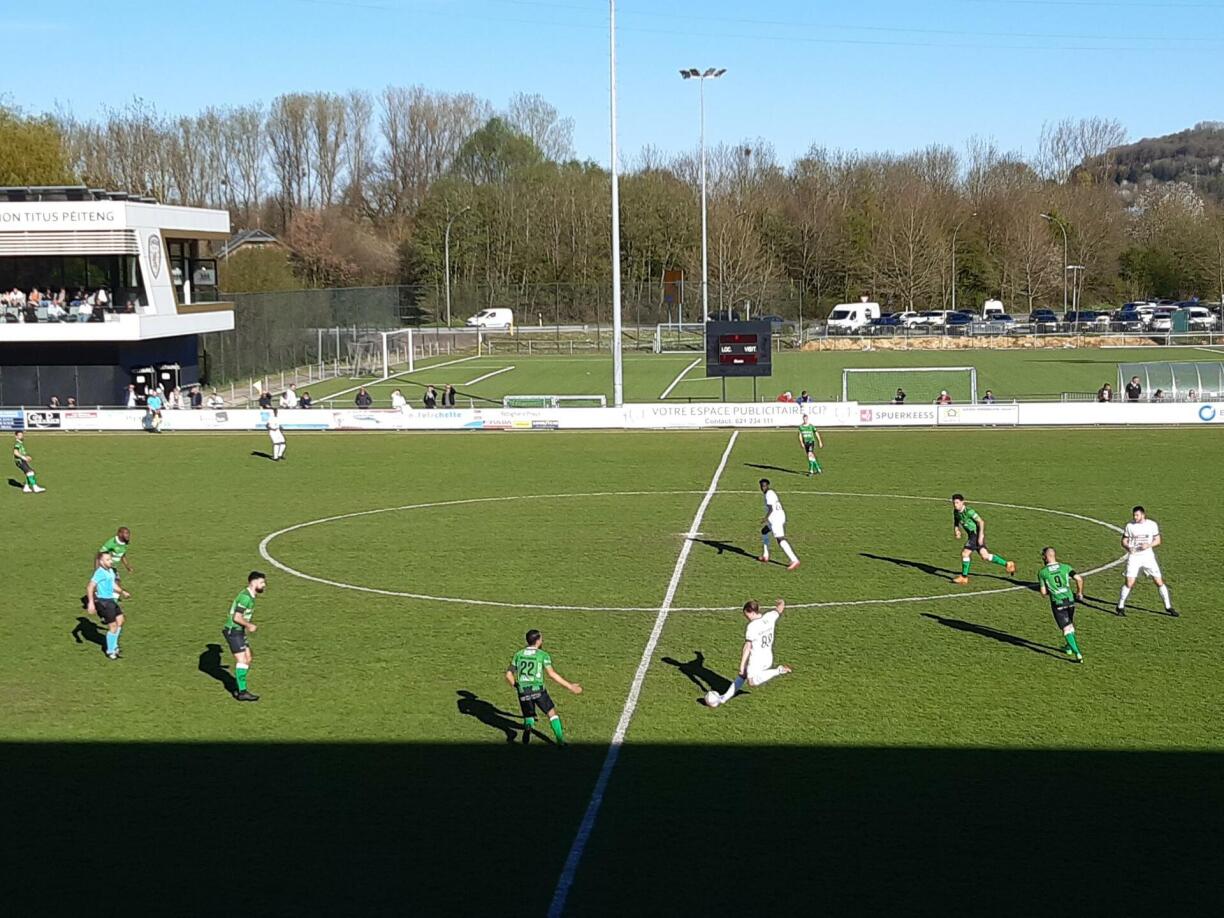 Kee Gol an den éischte 45 Minutten tëscht Union Titus Péiteng an der US Munneref, dat och, well d’Ekippe méi drop konzentréiert waren, kee Gol ze kasséieren an net wierklech vill Tempo an dëser Partie dra war. Fir d’Heemekipp gouf et dann awer an der 52. Minutt eppes ze feieren, wéi de Abreu déi Péitenger a Féierung bruecht huet, no gudder Viraarbecht vum Pina Gomes. De Gol huet d’Partie méi séier a méi interessant gemaach, well béid Ekippen elo méi gemaach hunn. Duerch e Corner an der 64. Minutt an e gudde Käpper vum Morabit hu sech déi Munnerefer zeréck an d’Partie gekämpft an um Schluss krute béid Ekippen bei dësem 1:1 e Punkt an der Tabell bäi.