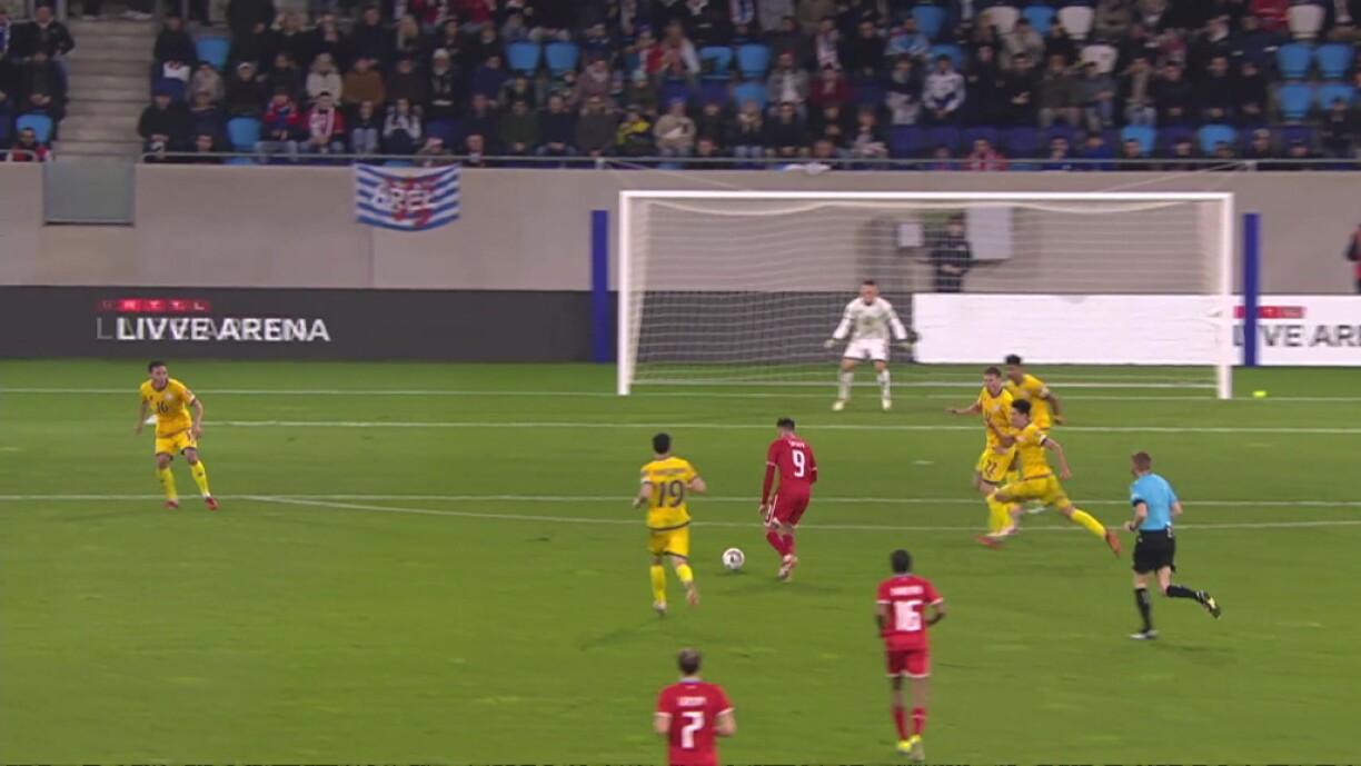 Nëmmen 2 Minutte méi spéit waren d’Jonge vum Trainer Luc Holtz dunn och nach bal a Féierung gaangen. De Schoss vum Danel Sinani ass awer just widder de Potto gaangen.