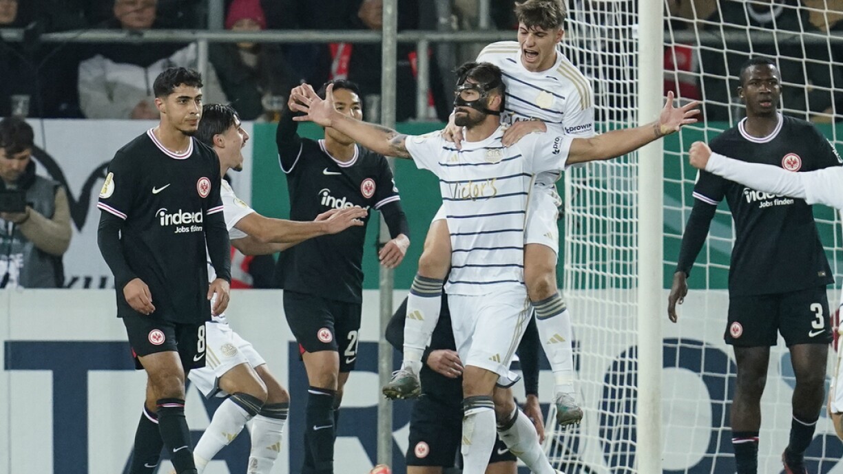 De Brünker an de Kerber hunn d’Goler fir den Drëttligist geschoss. Deemno ass d’Ekipp vum fréieren F91-Diddeleng-Trainer Dino Toppmöller eliminéiert. No Bayern München de viregten Tour ass Frankfurt den zweete Bundesligist, dee vu Saarbrécken aus der Coupe geheit gëtt.