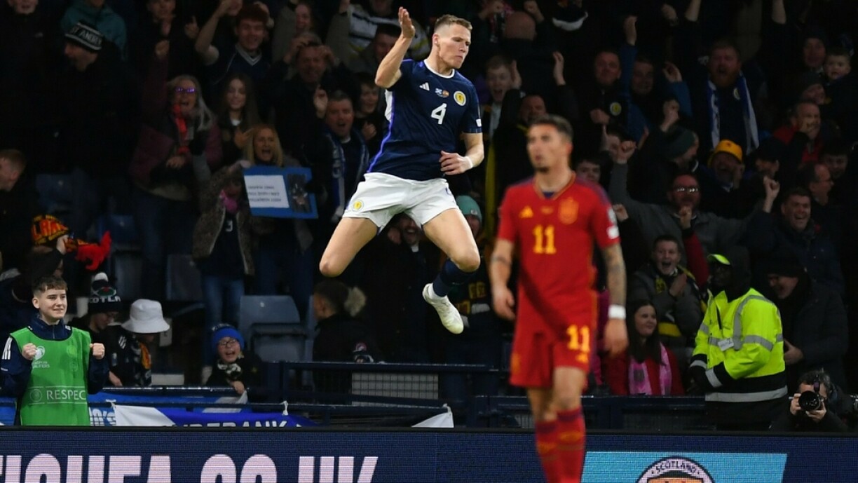 De McTominay huet direkt zweemol zougeschloe fir Schottland géint Spuenien a war domat de Mann vum Match.