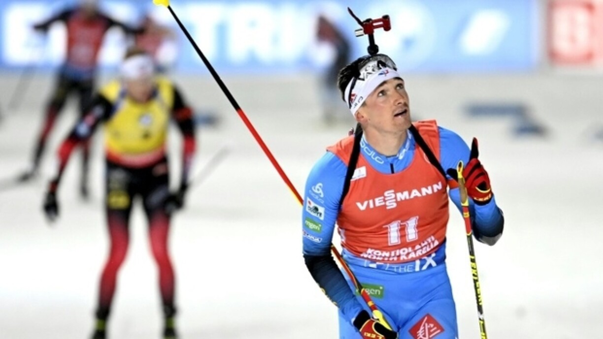 Am finnesche Kontiolahti waren d’Hären e Sonndeg de Moien op engem Circuit iwwer 12,5 Kilometer an der Poursuite gefuerdert. De Sebastian Samuelsson aus Schweden konnt sech mat enger Zäit vun 32:26,7 Minutten a just engem Schoss-Feeler um Enn duerchsetzen a sech domat seng éischt Weltcup-Victoire sécheren. Mat engem Retard vu 15,8 Sekonnen ass de Fransous Fabien Claude op déi zweet Plaz gefuer an de Podium huet de Johannes Thingnes Bö aus Norwegen komplettéiert.