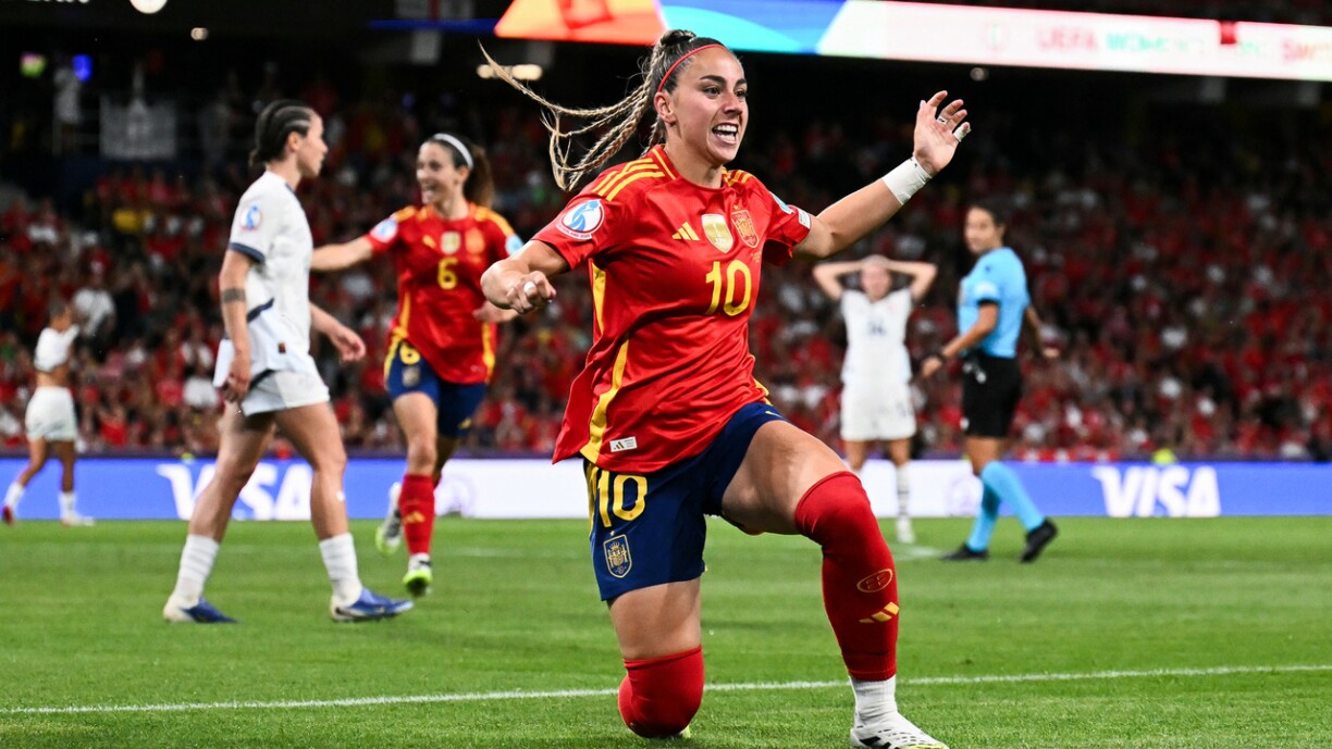 Am Wankdorf Stadion zu Bern hat Spuenie vun Ufank un d’Kontroll iwwert de Ball, sou datt déi éischt offensiv Aktiounen net laang op sech waarde gelooss hunn. No nëmmen aacht Minutten huet d’Arbittesch dann op den Eelefmeterpunkt gewisen, nodeems d’Nadine Riesen d’Mariona un d’Fale bruecht hat. D’spuenesch Stiermerin huet et da selwer probéiert an de Ball mat engem flaache Schoss knapps lénks laanscht de Gol gesat. Trotz dem mëssgléckten Eelefmeter war Spuenien weider déi besser Ekipp. Ma dacks wollte si et ze komplizéiert maachen, sou datt et géint leidenschaftlech Schwäizerinnen mat engem 0:0 an d’Paus gaange war.