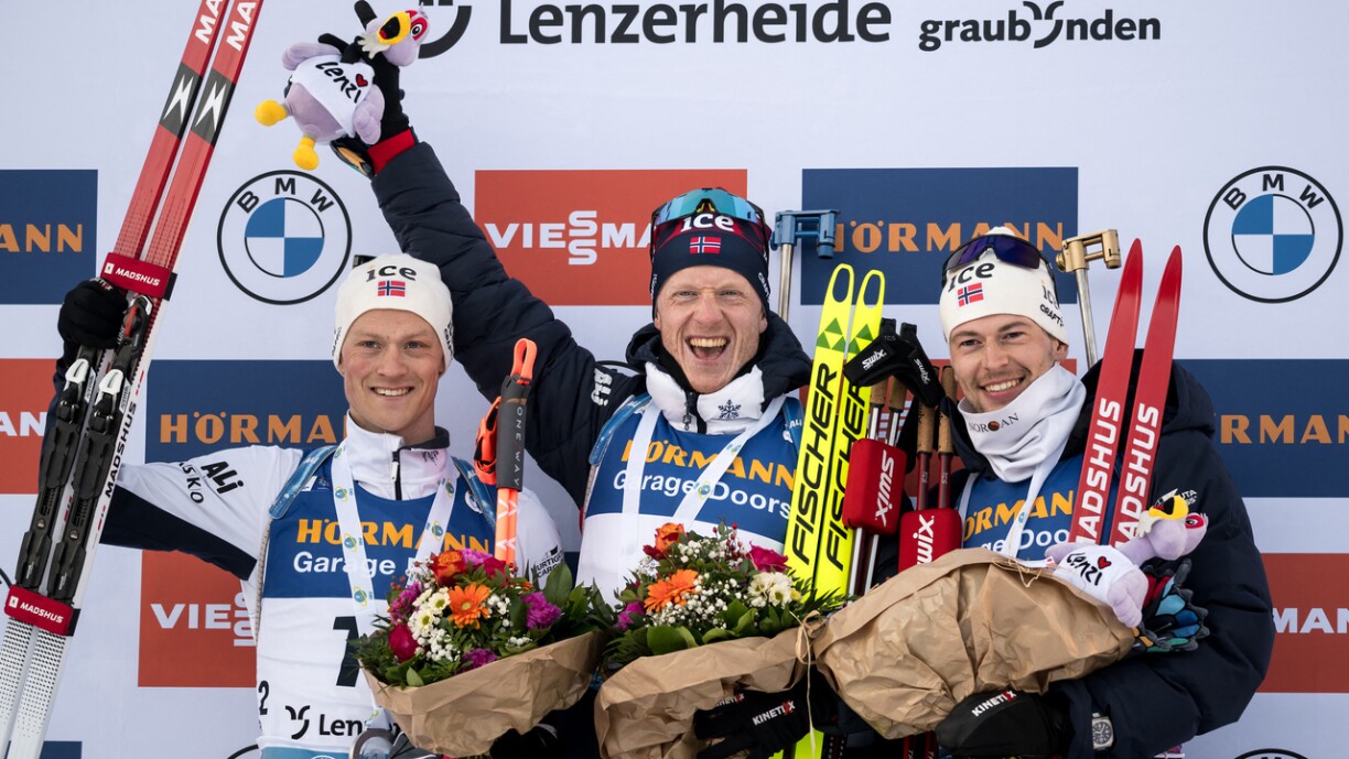 De Johannes Thingnes Bö huet sech an der Poursuite duerchgesat, obwuel hien dräimol donieft geschoss huet. Op d’Plazen 2 an 3 koumen déi aner Norweger Endre Strömsheim (2 Feeler) mat engem Retard vu ronn 24 Sekonnen a Sturla Holm Laegreid (1 Feeler) mat engem Réckstand vun 29 Sekonnen.