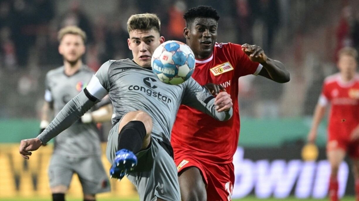 An Däitschland war en Dënschdeg den Owend den Optakt vun de Véierelsfinallen am DFB-Pokal. Union Berlin huet sech deen éischten Ticket fir déi nächst Ronn geséchert. De Veräin aus der Bundesliga huet sech no engem Réckstand mat 2:1 géint den FC St. Pauli aus der 2. Bundesliga duerchgesat. Am Stadion An der Alten Försterei hat de Kyereh (21') d’Gäscht a Féierung bruecht. Sekonne virun der Paus hat de Becker fir d’Berliner ausgeglach. Den decisive Gol huet den agewiesselte Voglsammer (75') geschoss.