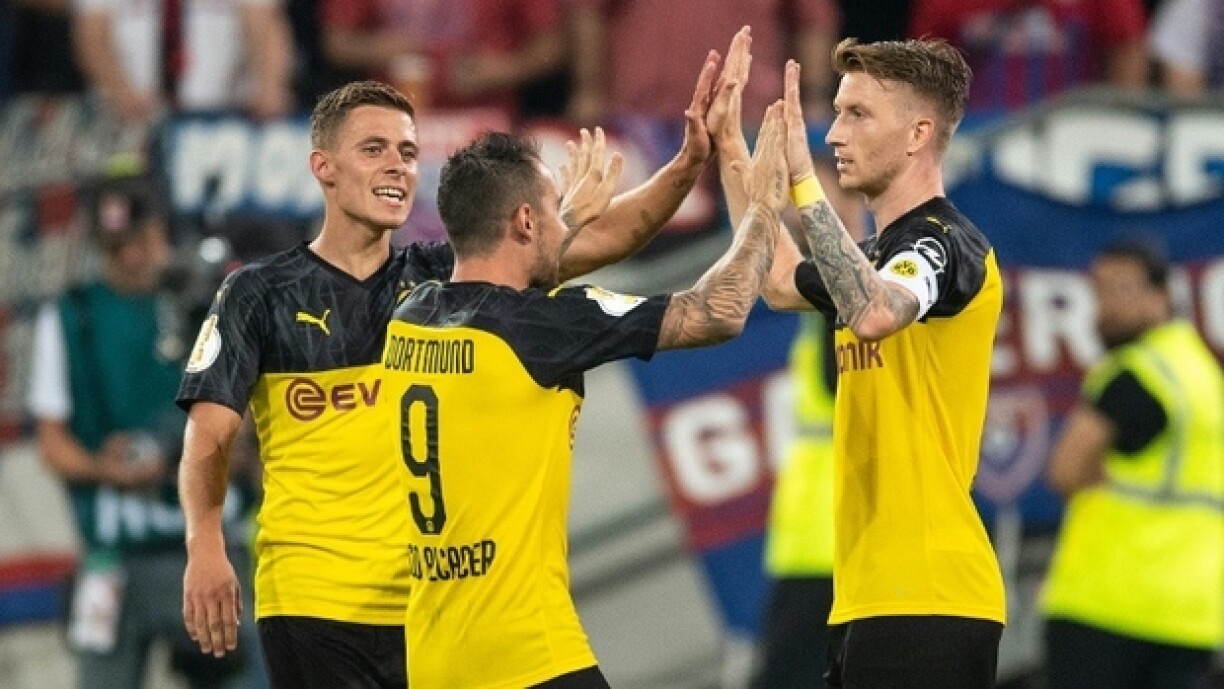 No den éischte 45 Minutte goung et mat engem 0:0 an d’Paus. Nom Téi huet de BVB awer opgedréint an ass an der 49. duerch de Reus mat 1:0 a Féierung gaangen. 20 Minutte viru Schluss konnt den Alcacer mat engem direkte Fräistouss op 2:0 setzen. Bei dësem Resultat sollt et bis zum Schluss bleiwen, sou datt Borussia Dortmund souverän am 2. Tour steet.