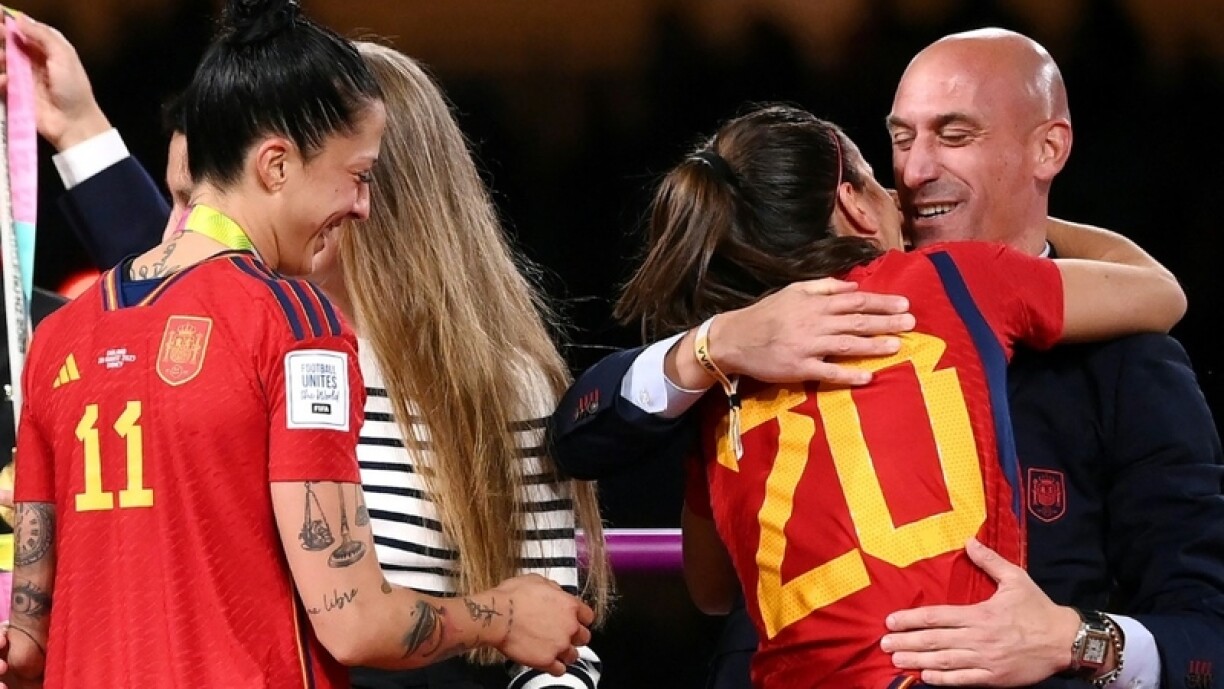 De President vum spuenesche Fussballverband Luis Rubiales hat jo no der WM-Victoire vu Spuenien d’Spillerin Jennifer Hermoso op de Mond gekusst.