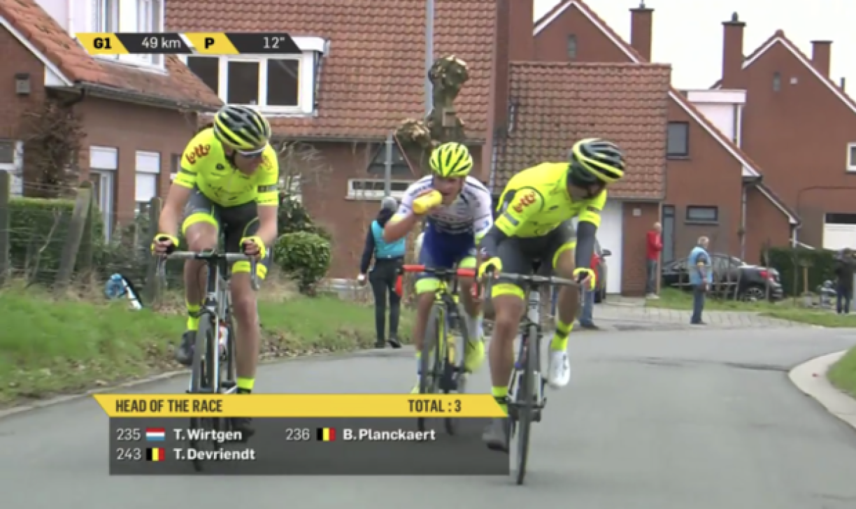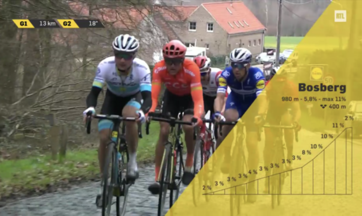D’Schlussphas war spannend: 5 Kilometer virun Enn war d’Avance vun de 6 Leit un der Spëtzt genee 30 Sekonnen. Aus dësem Grupp eraus huet dunn den Zdenek Stybar attackéiert an d’Konkurrenz no der Tempoverschäerfung vum Tim Wellens stoe gelooss.