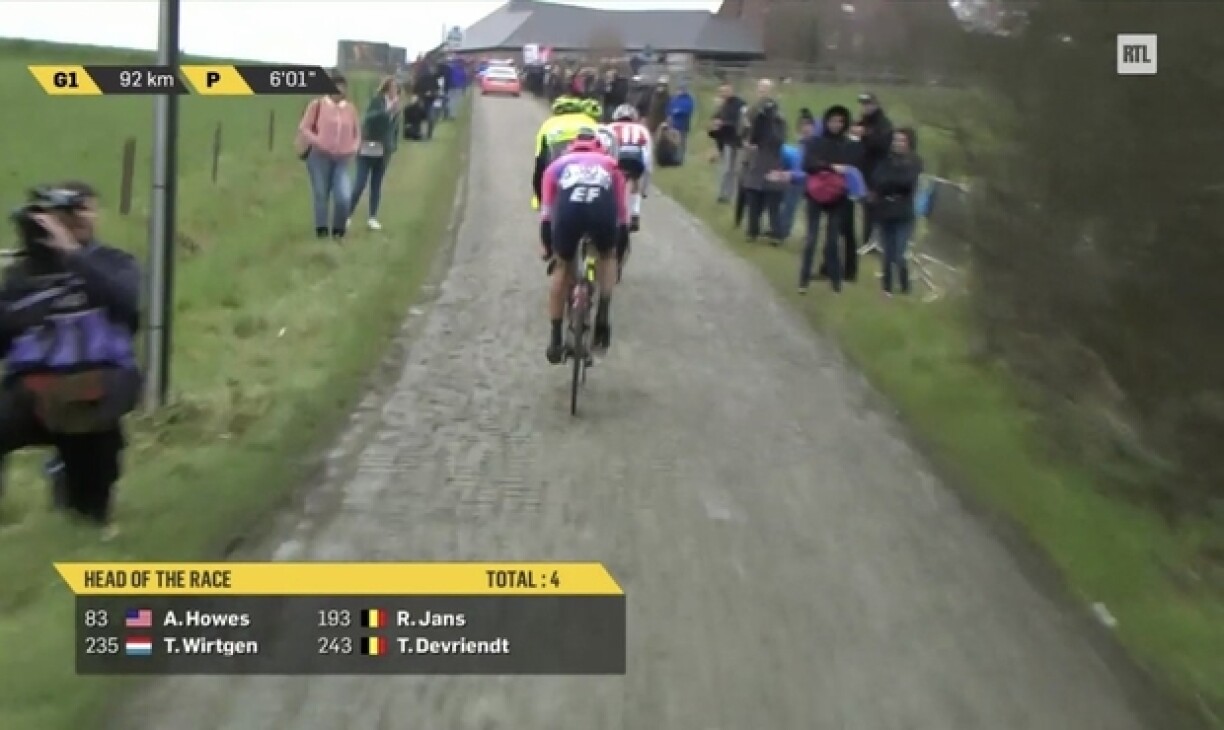 Beim éischte richtegen Test vun der neier Saison hu bei der 74. Editioun vum Omloop Het Nieuwsblad ronn 200 Kilometer op d’Coureure gewaart. Mat dobäi waren och véier Lëtzebuerger: Den Tom Wirtgen (Wallonie- Bruxelles), den Alex Kirsch (Trek-Segafredo), de Jempy Drucker (Bora HansGrohe) an de Bob Jungels (Deceunink – Quickstep).