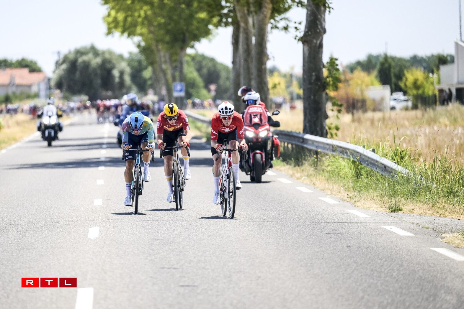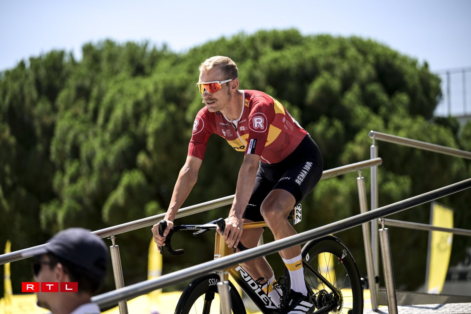 Um Wee erof op d’Arrivée ass dunn de grousse Favorit op d’Gesamtvictoire Tadej Pogacar zu Fall komm, wéi den Tobias Halland Johannessen virun him d’Stroossesäit wiessele wollt an dobäi ze enk dem Weltmeeschter seng Trajectoire gekräizt hat. Wéi et ausgesäit, ass dem Slowen awer weider näischt passéiert. Seng Teamkolleegen hunn hien erëm un de Peloton erugefuer, deen op hie gewaart huet.