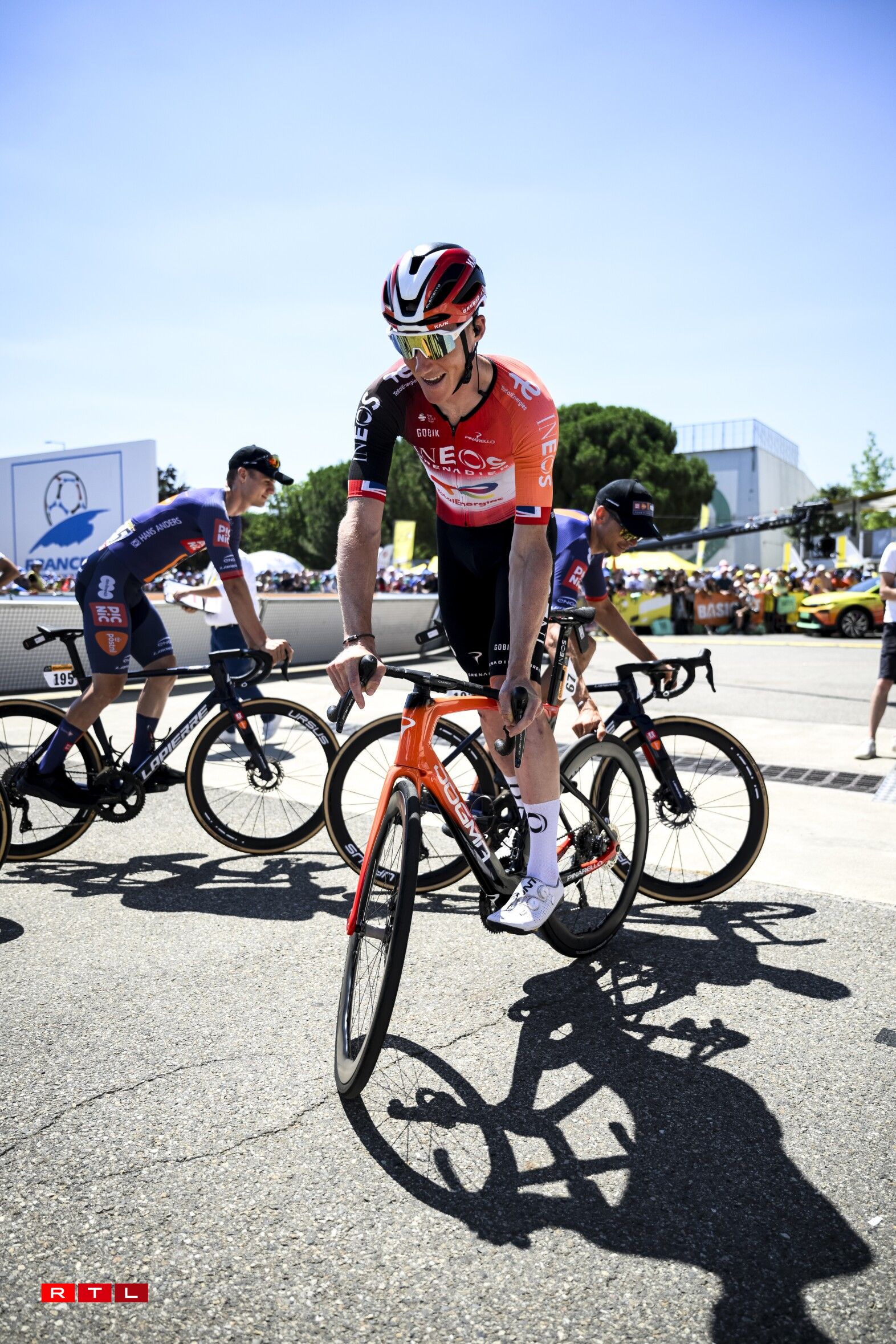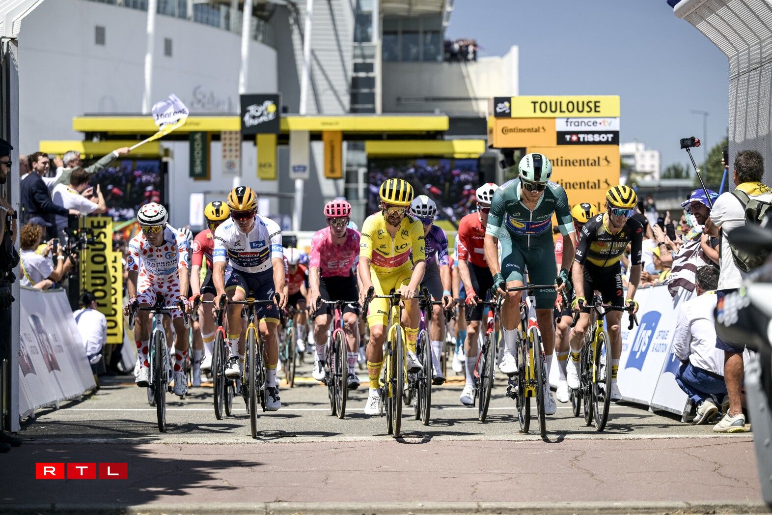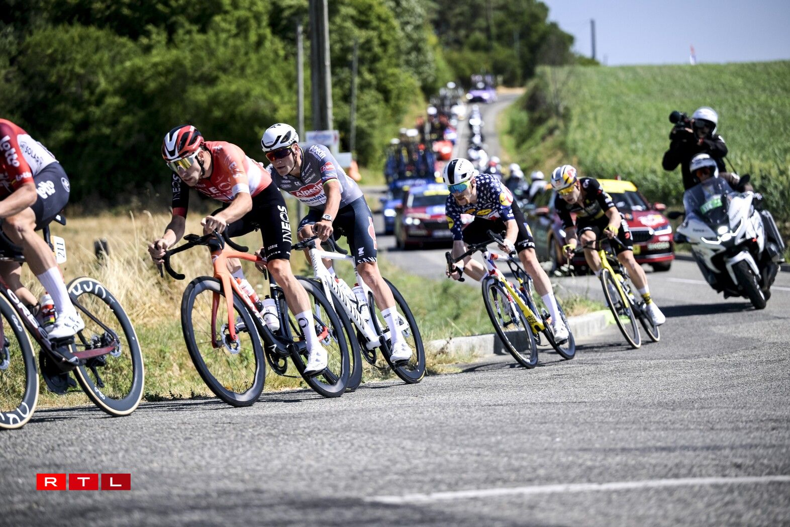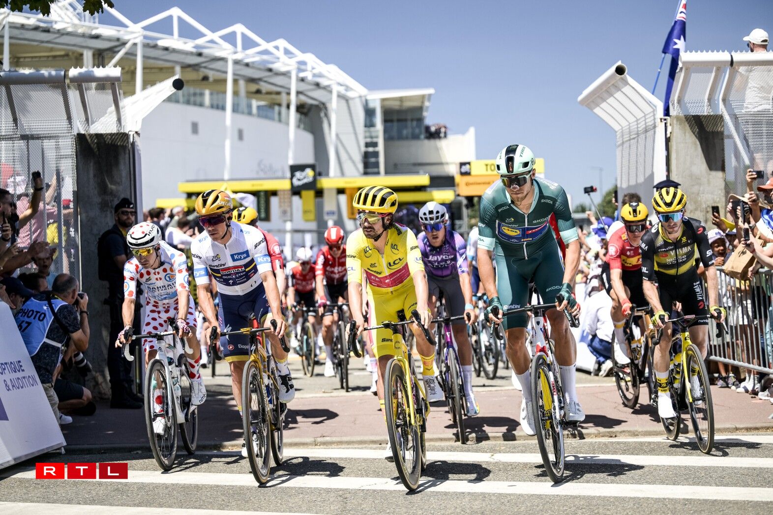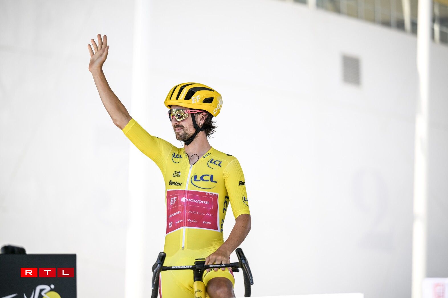 De Weltmeeschter Tadej Pogacar ass ronn 6 Kilometer virun der Arrivée gefall, konnt awer weiderfueren. Um Enn ass de Slowen zäitgläich mam Maillot Jaune Ben Healy, dem Remco Evenepoel an dem Jonas Vingegaard iwwer d’Arrivée gefuer. De Spëtzegrupp hat ee Retard vun 3 Minutten an 28 Sekonnen op de Vainqueur Jonas Abrahamsen. Am General bleift alles onverännert.