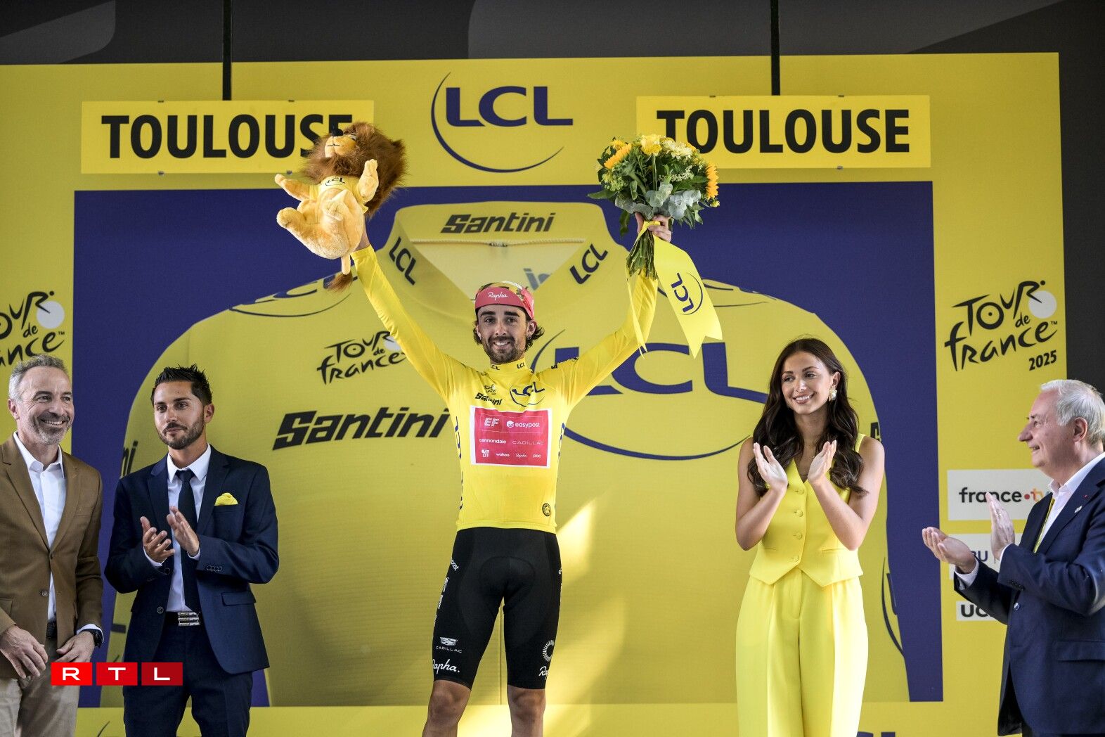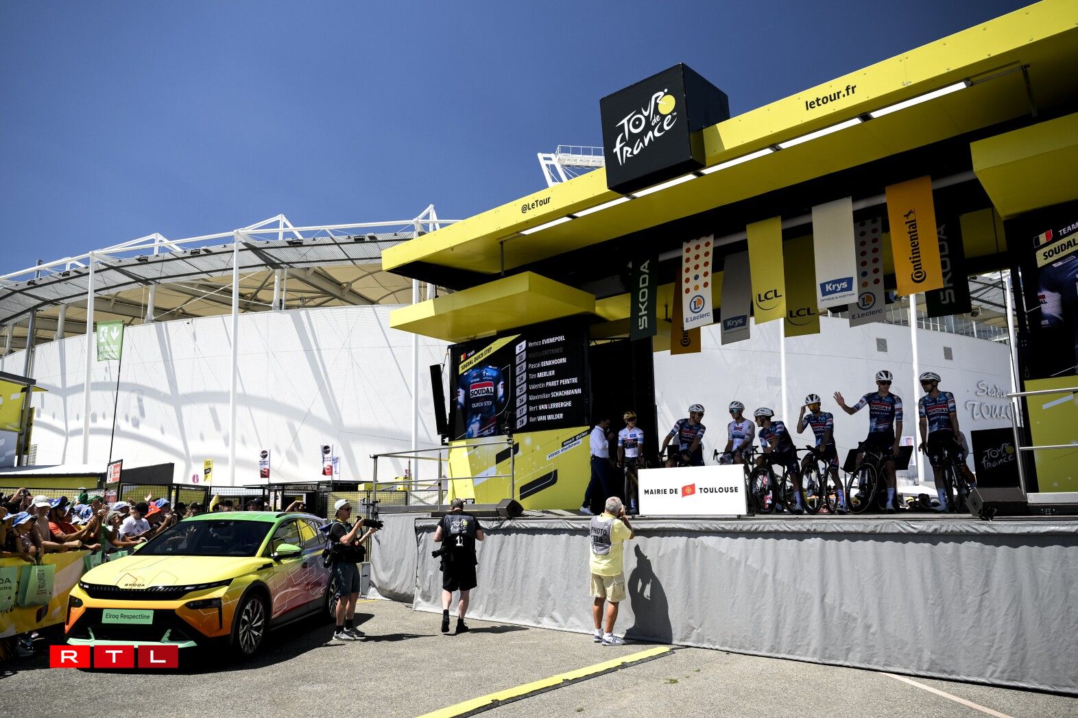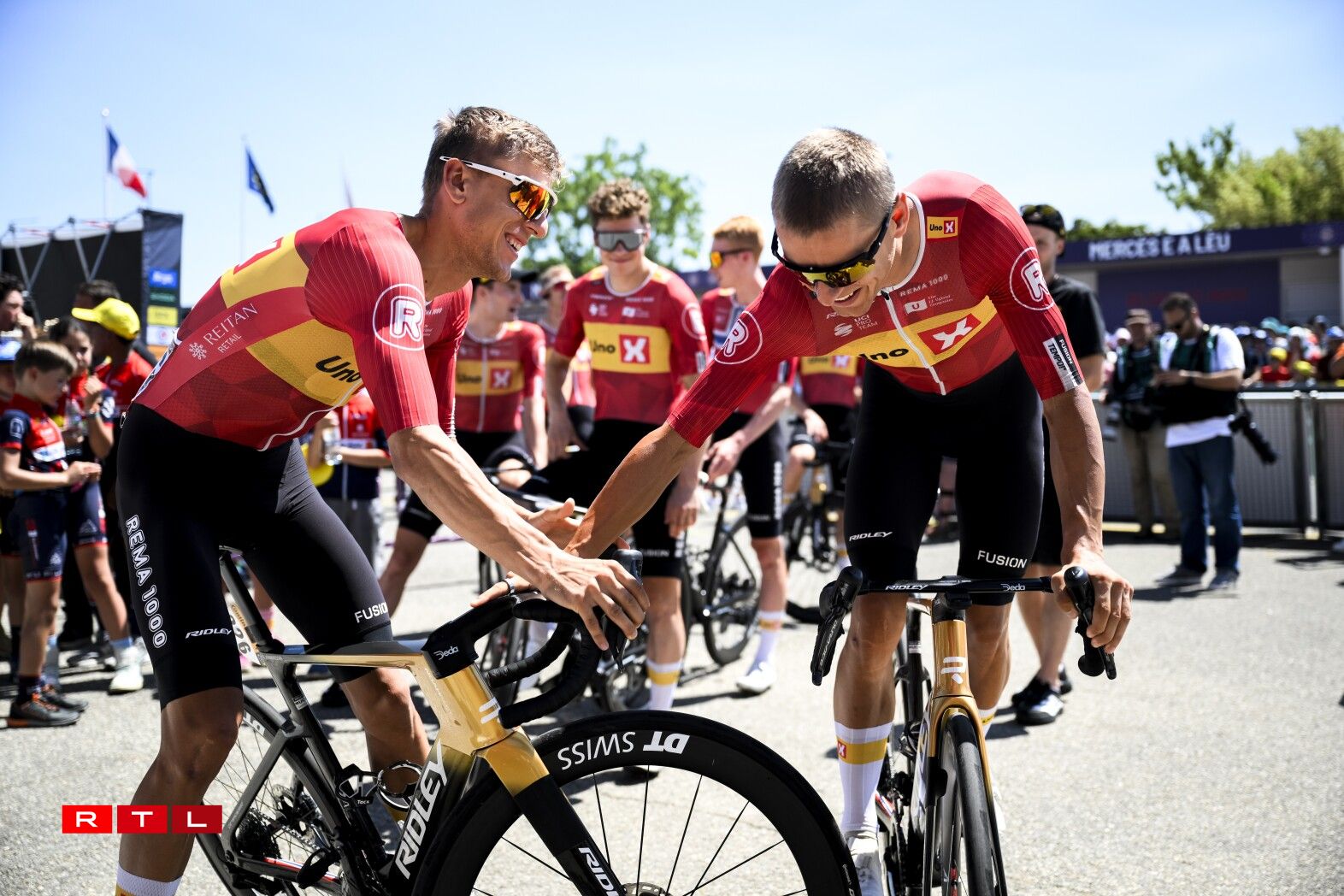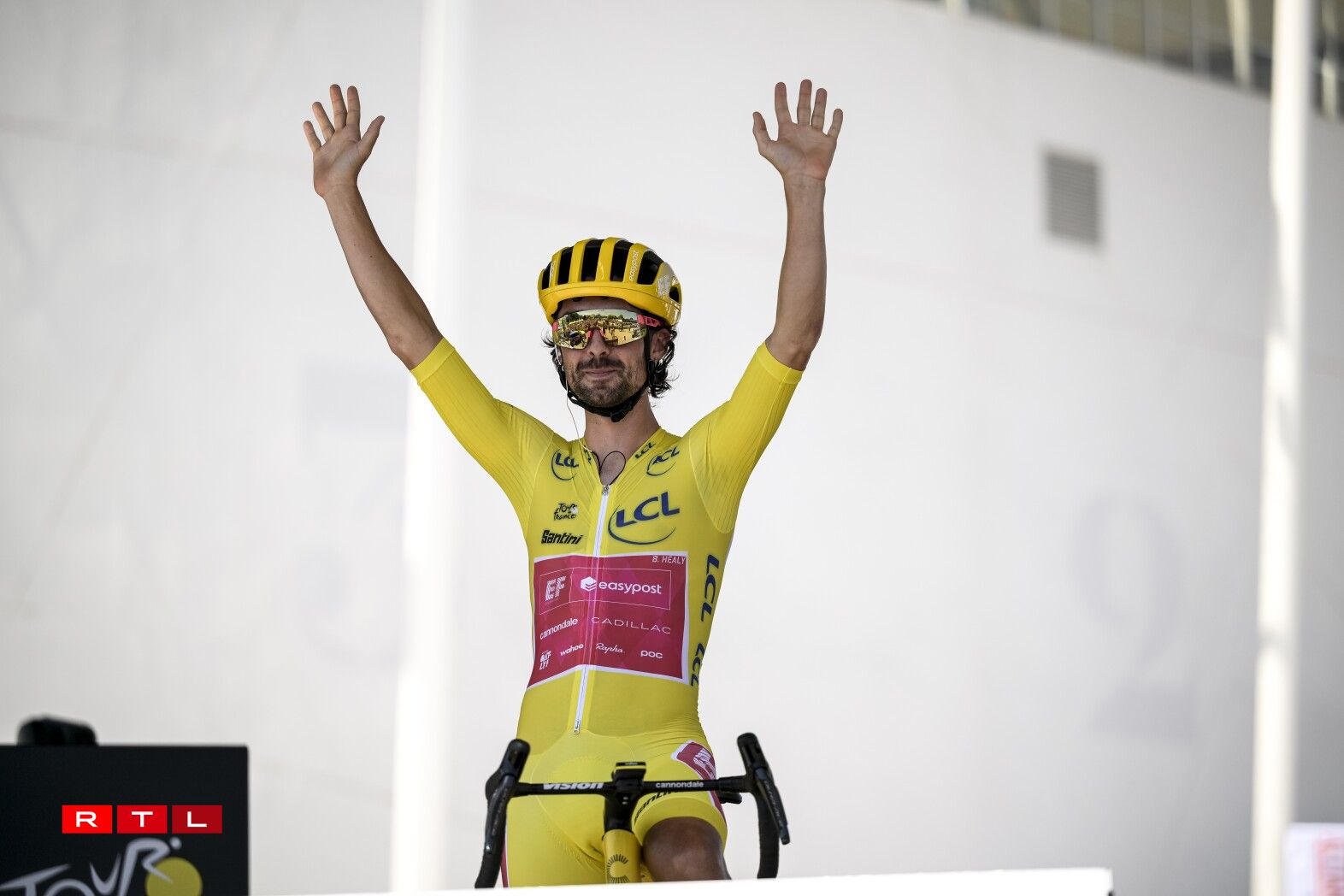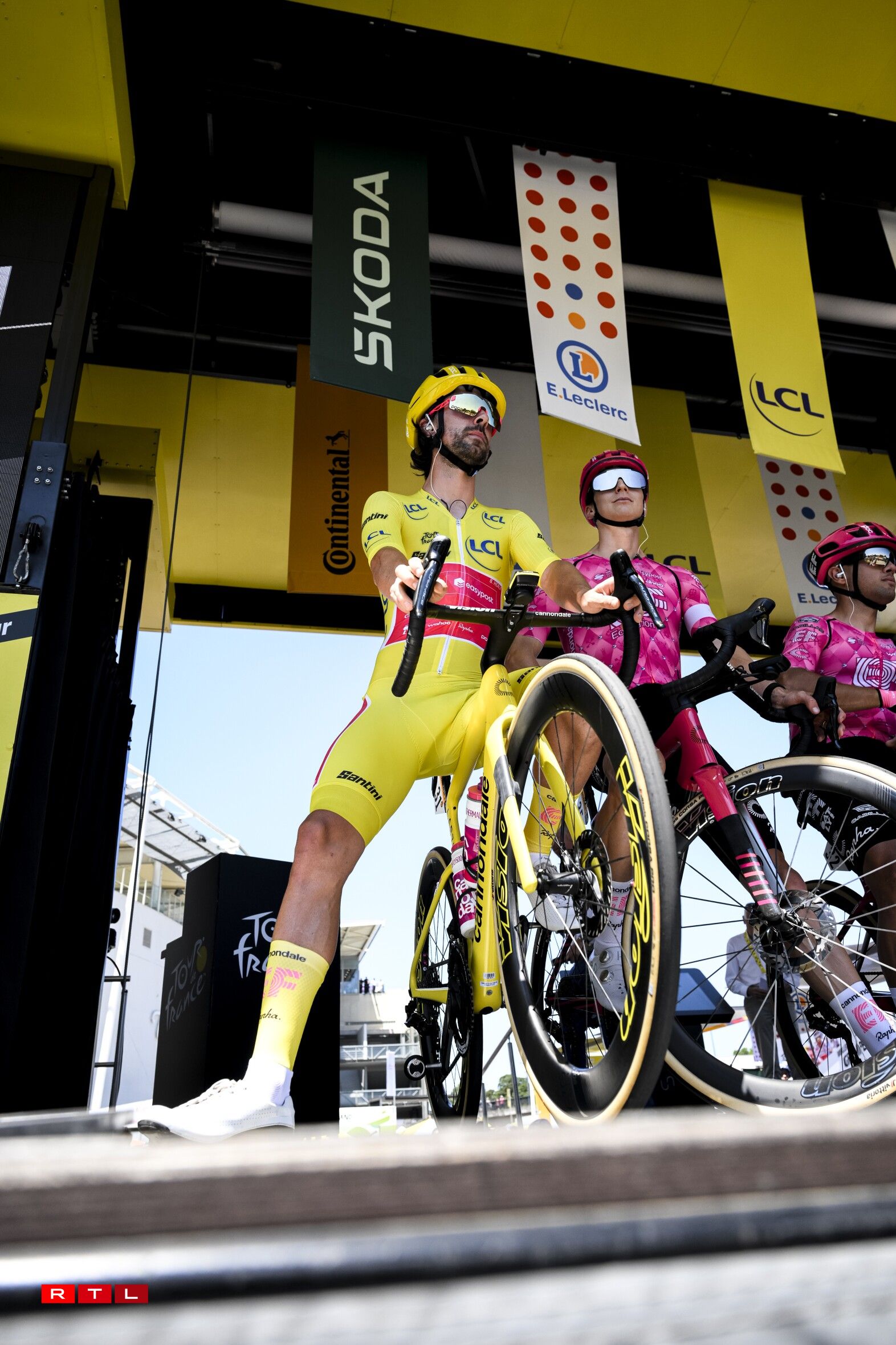 De Weltmeeschter Tadej Pogacar ass ronn 6 Kilometer virun der Arrivée gefall, konnt awer weiderfueren. Um Enn ass de Slowen zäitgläich mam Maillot Jaune Ben Healy, dem Remco Evenepoel an dem Jonas Vingegaard iwwer d’Arrivée gefuer. De Spëtzegrupp hat ee Retard vun 3 Minutten an 28 Sekonnen op de Vainqueur Jonas Abrahamsen. Am General bleift alles onverännert.