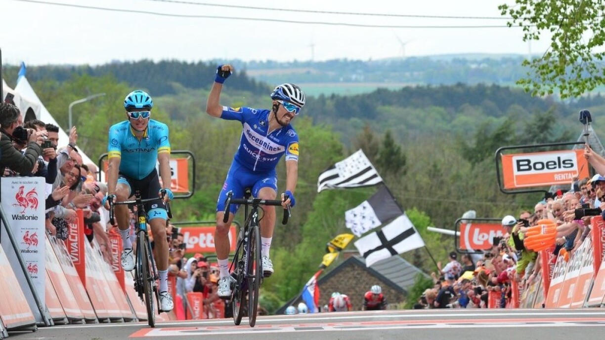 E gréissere Grupp mat bal all de Favoritten ass dunn zesummen an d’Mur de Huy gaangen. Do war et de Jakob Fuglsang, deen als Éischten attackéiert huet an déi Attack souz nawell, well deen eenzegen, dee matgoe konnt war de Julian Alaphilippe an dee sollt um Enn dann och laanschtzéien. De Fuglsang war zwar bal nach eemol laanschtkommen, ma et sollt net méi ganz duergoen an esou wënnt de Fransous eng zweete Kéier hannerteneen. De Fuglsang gëtt Zweeten an den Ulissi den Drëtten.