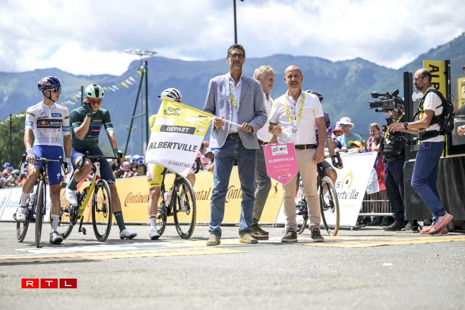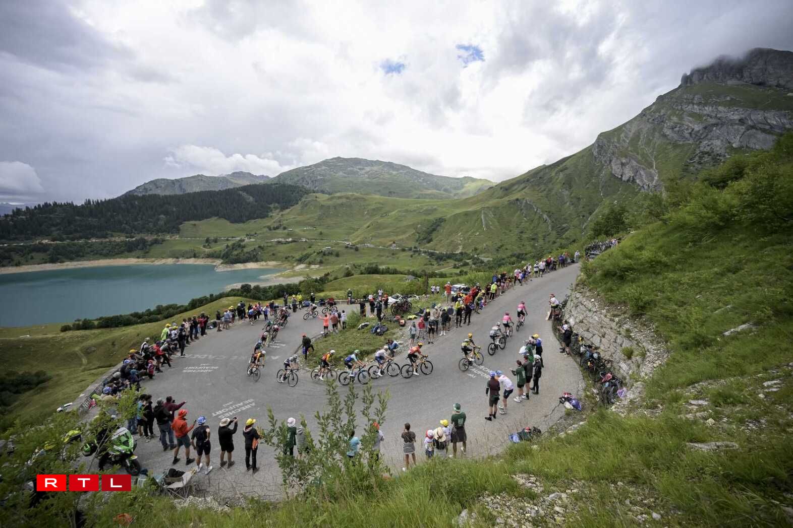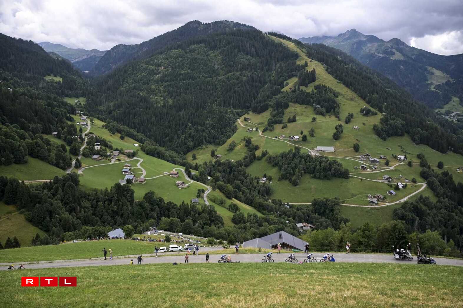 D’Vitess am Spëtzegrupp war op den éischte Kilometer vun der Schlussmontée erop La Plagne (Hors Catégorie) extrem héich. Dofir hunn dem Pogacar seng Leit vun UAE gesuergt an och DECATHLON AG2R vum Felix Gall. Kilometer fir Kilometer, ass de Grupp méi kleng ginn. 14 Kilometer virun der Arrivée, huet de Pogacar attackéiert a just de Vingegaard an den Thymen Arensman konnte säi Rad halen. Den Arensman huet attackéiert. Pogacar a Vingegaard hunn den Hollänner och fuere gelooss an hunn Tempo erausgeholl. Esou konnten ënnert anerem de Florian Lipowitz an den Oscar Onley, déi fir déi 3. Platz am General gefuer sinn, nees opschléissen. 7 Kilometer virum wäisse Stréch huet de Pogacar nees acceleréiert. Vingegaard, Lipowitz an Onley konnten nosetzen. 2 Kilometer virun der Arrivée, huet de Onley am Grupp Maillot Jaune lassgelooss a parallel huet de Lipowitz attackéiert.