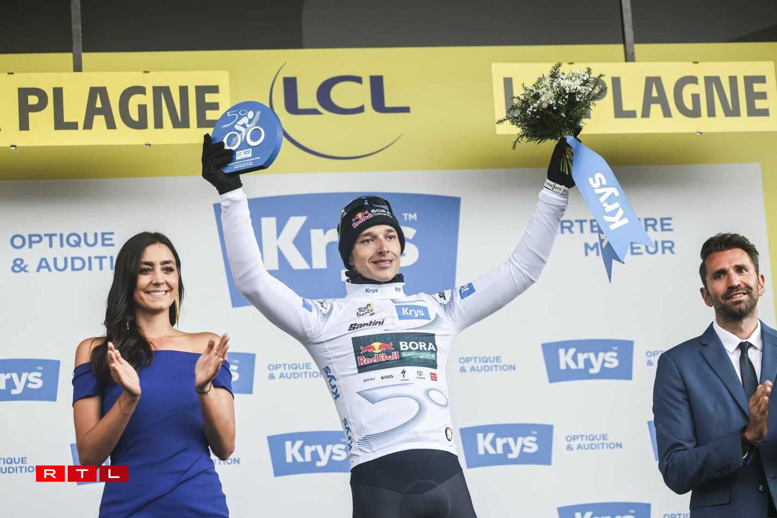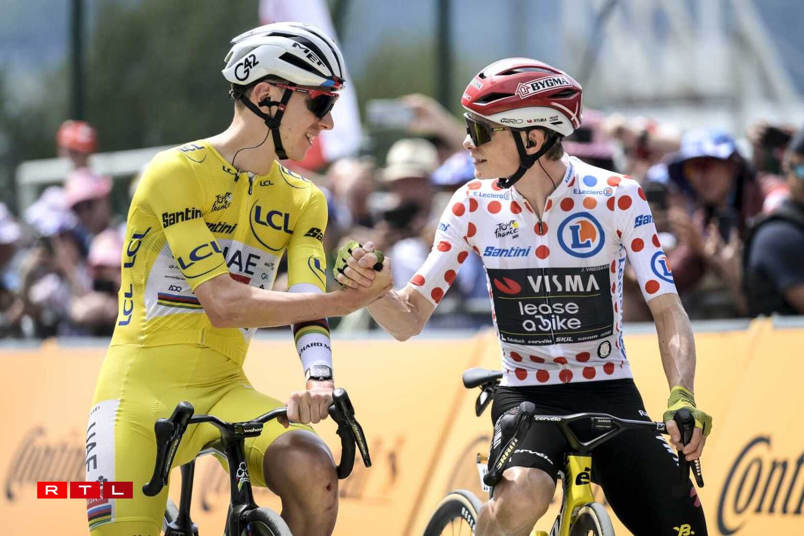 Am General huet de Tadej Pogacar elo eng Avance vu 4 Minutten a 24 Sekonnen op de Jonas Vingegaard. Drëtten ass de Florian Lipowitz op iwwer 11 Minutten. Dat dierft dann och de Podium zu Paräis sinn.