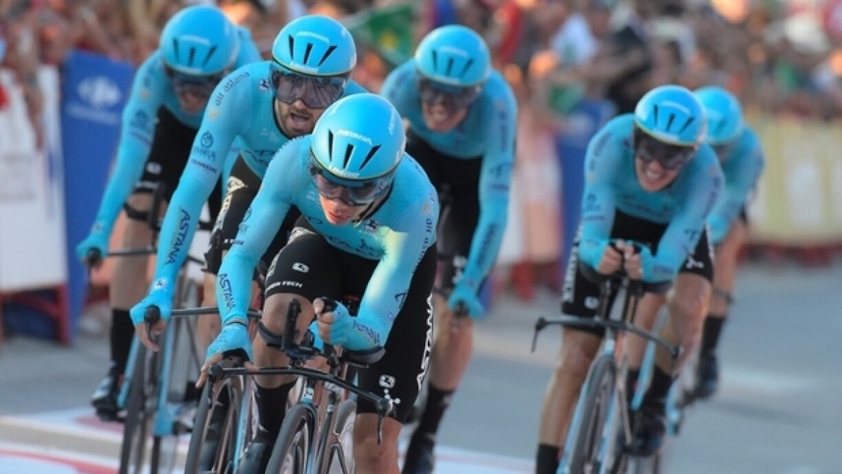 Mat enger Zäit vun 14'51" steet d’Ekipp vun Astana zum Schluss vun der 1. Etapp un der Spëtzt. Op déi zweete Plaz kënnt Deceuninck Quick-Step (+0:02 Minuten) virum Team Sunweb (+0:05 Minuten).