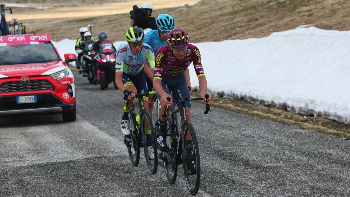 An um Camp Imperatore hat den Davide Bais déi bescht Been a konnt sech aus denger Echappée eraus d’Victoire vun der siwenter Etapp sécheren. Hien hat néng Sekonnen Avance op den Karel Vacek a 16 op de Simone Petilli.