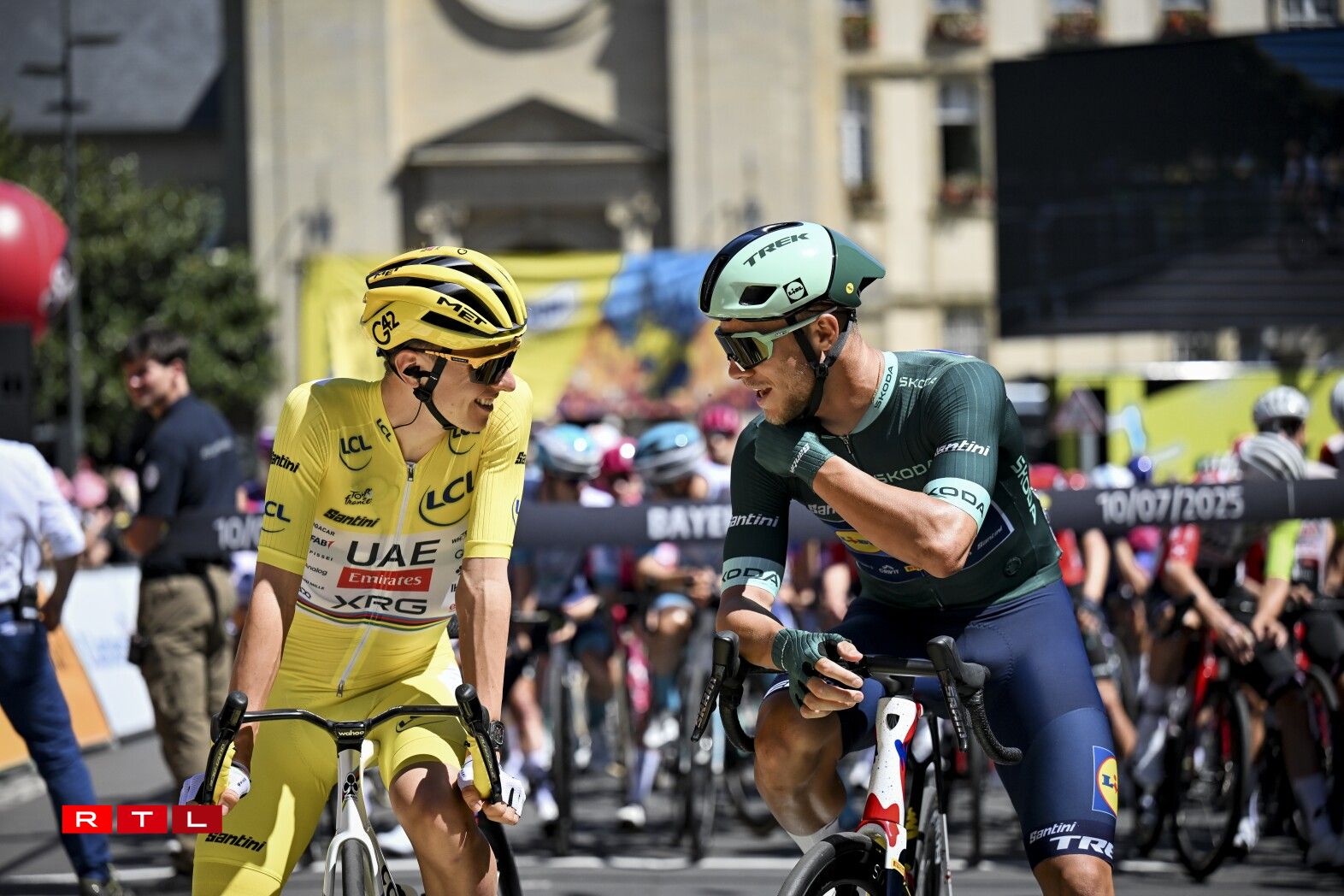 De Mathieu van der Poel ass elo nees am Gielen Trikot. Hie war an der Echappée vum Dag vertrueden an ass als 8. op dräi Minutten an 58 Sekonnen ukomm. De Grupp mat de Favoritte ronderëm den Tadej Pogacar hat ee Retard vu 5 Minutten a 27 Sekonnen. Am General huet de van der Poel eng Avance vun enger Sekonn op den Tadej Pogacar.