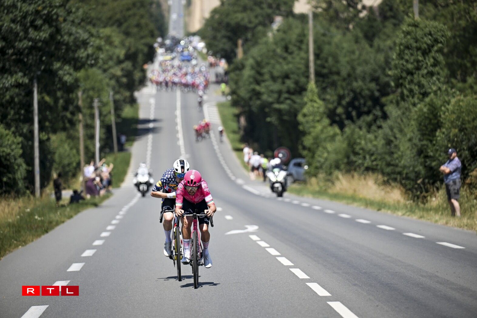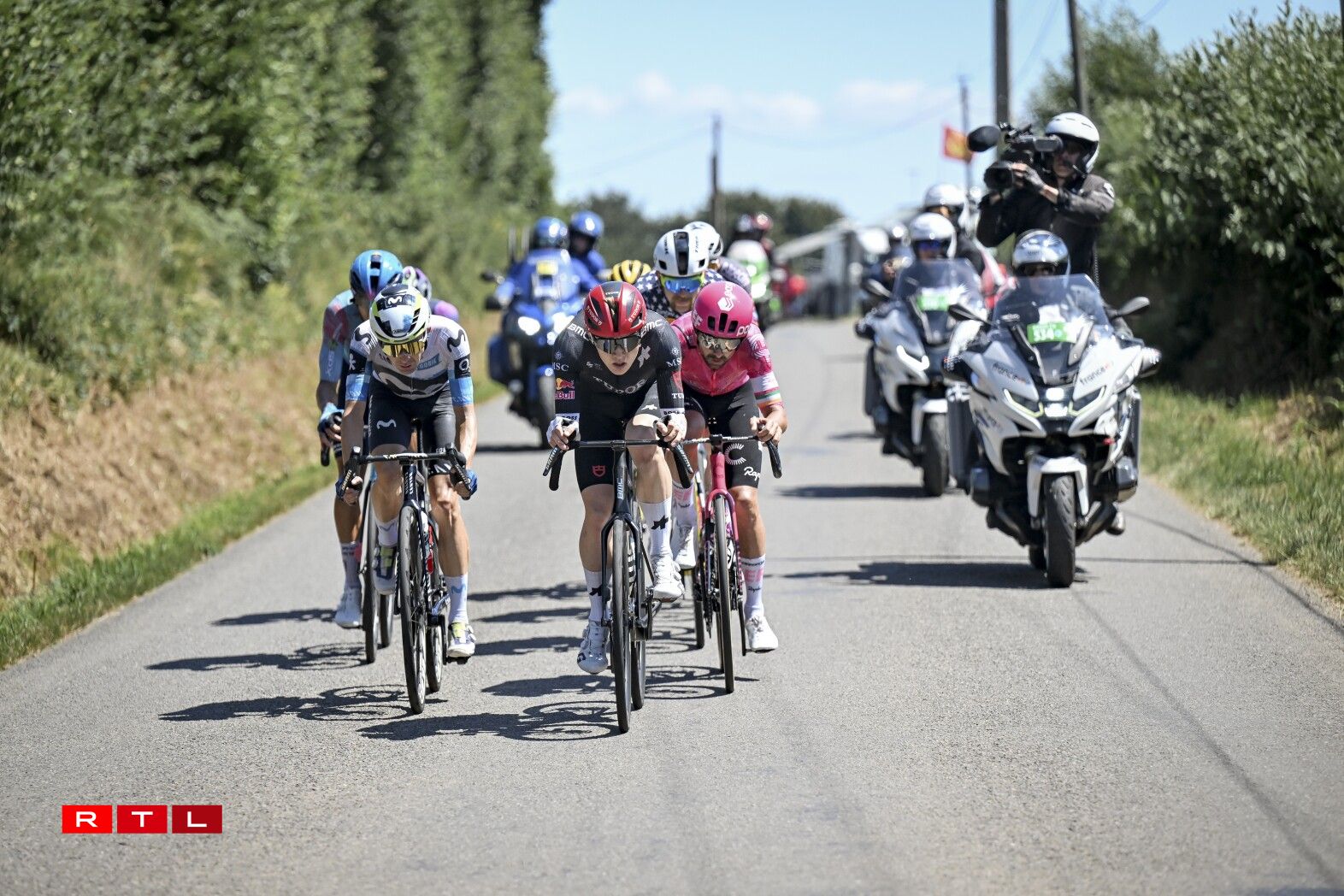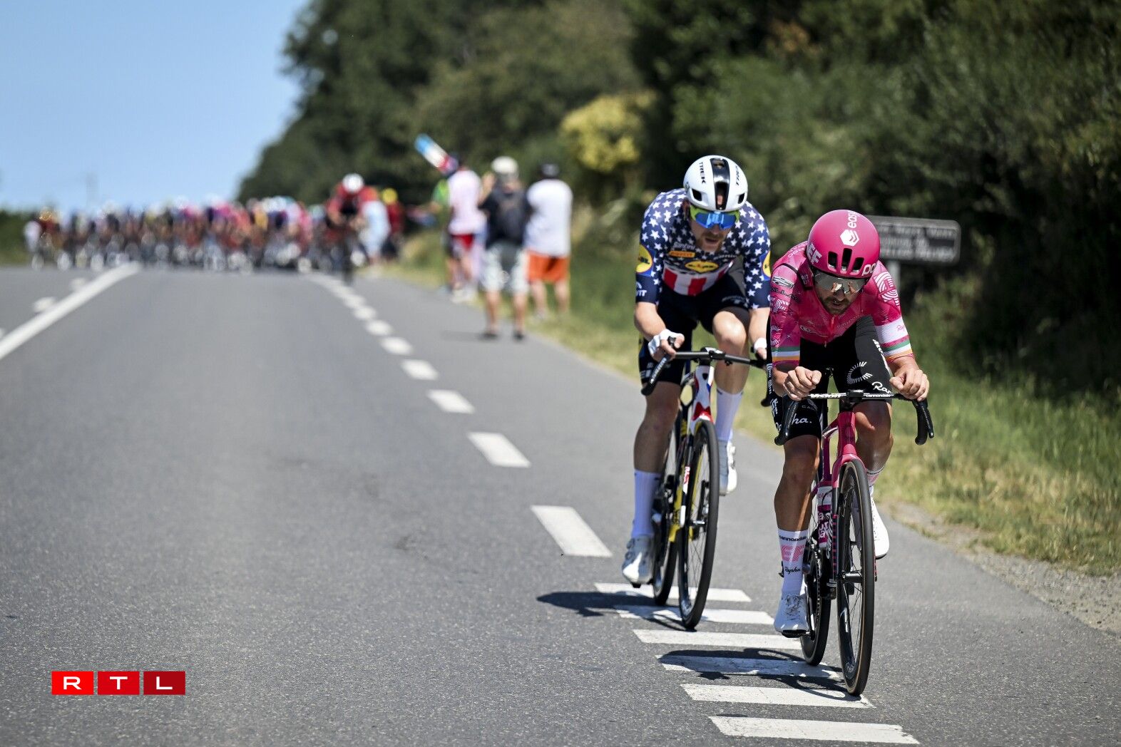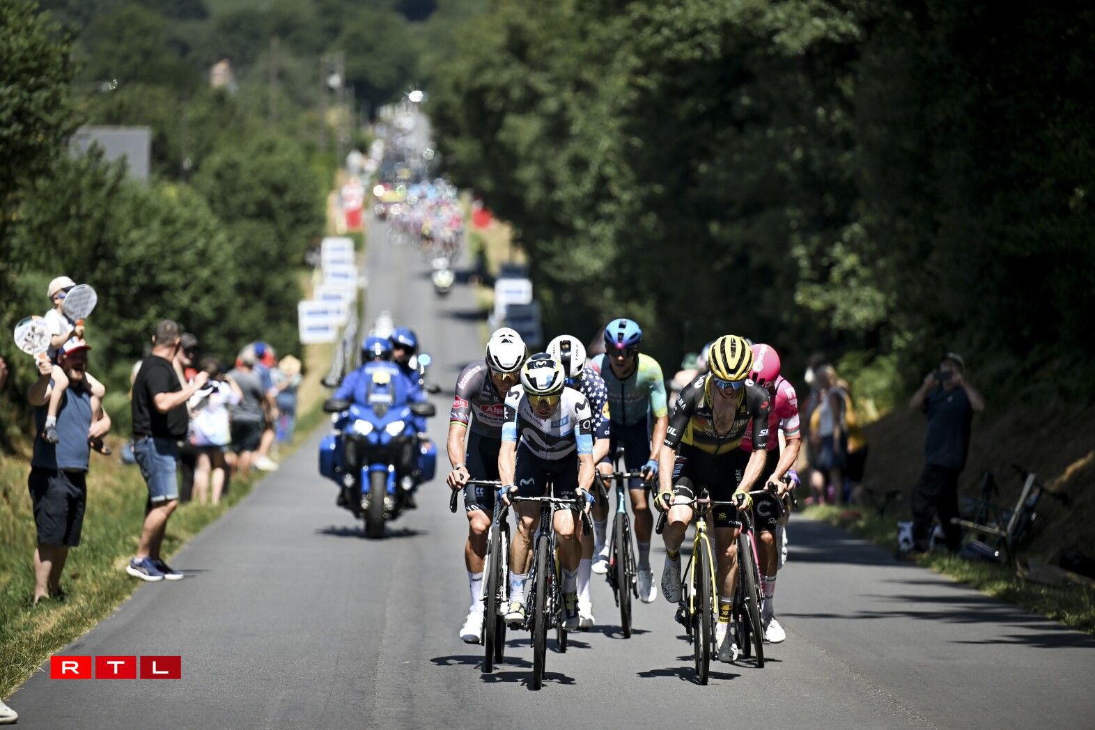 Déi gutt Echappée huet sech no der Côte de la Rançonnière forméiert. An dat mam Mathieu van der Poel, Quinn Simmons, Ben Healy, William Barta an Harold Tejada. Méi spéit sinn och nach den Eddie Dunbar, de Simon Yates an de Michael Storer dobäi komm. Et huet awer bis eng 100 Kilometer virun der Arrivée gedauert, bis déi Echappée och den definitive Bon de Sortie vum Peloton krut. Hir Avance ass bis op 4 Minutten a 50 Sekonnen eropgaangen. D‘Ekipp vum Maillot Jaune Tadej Pogacar (UAE) huet am Peloton fir den Tempo gesuergt.