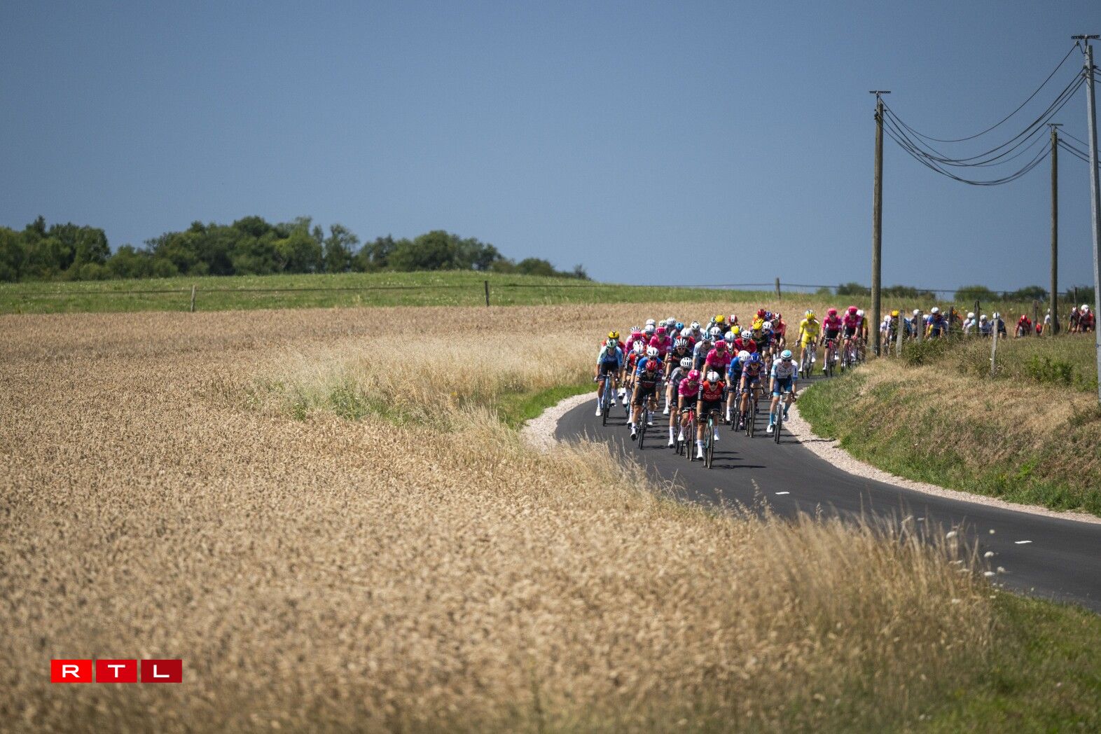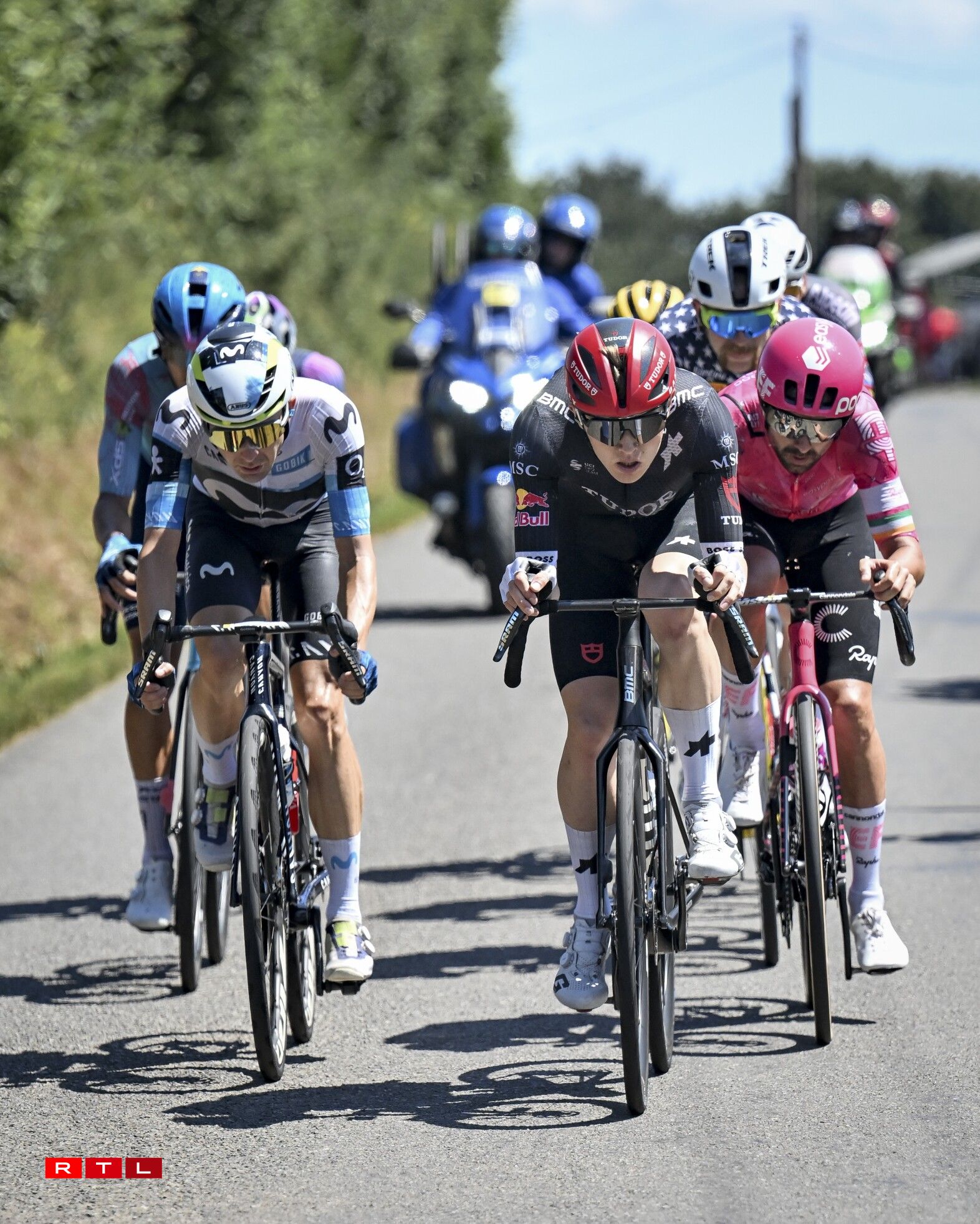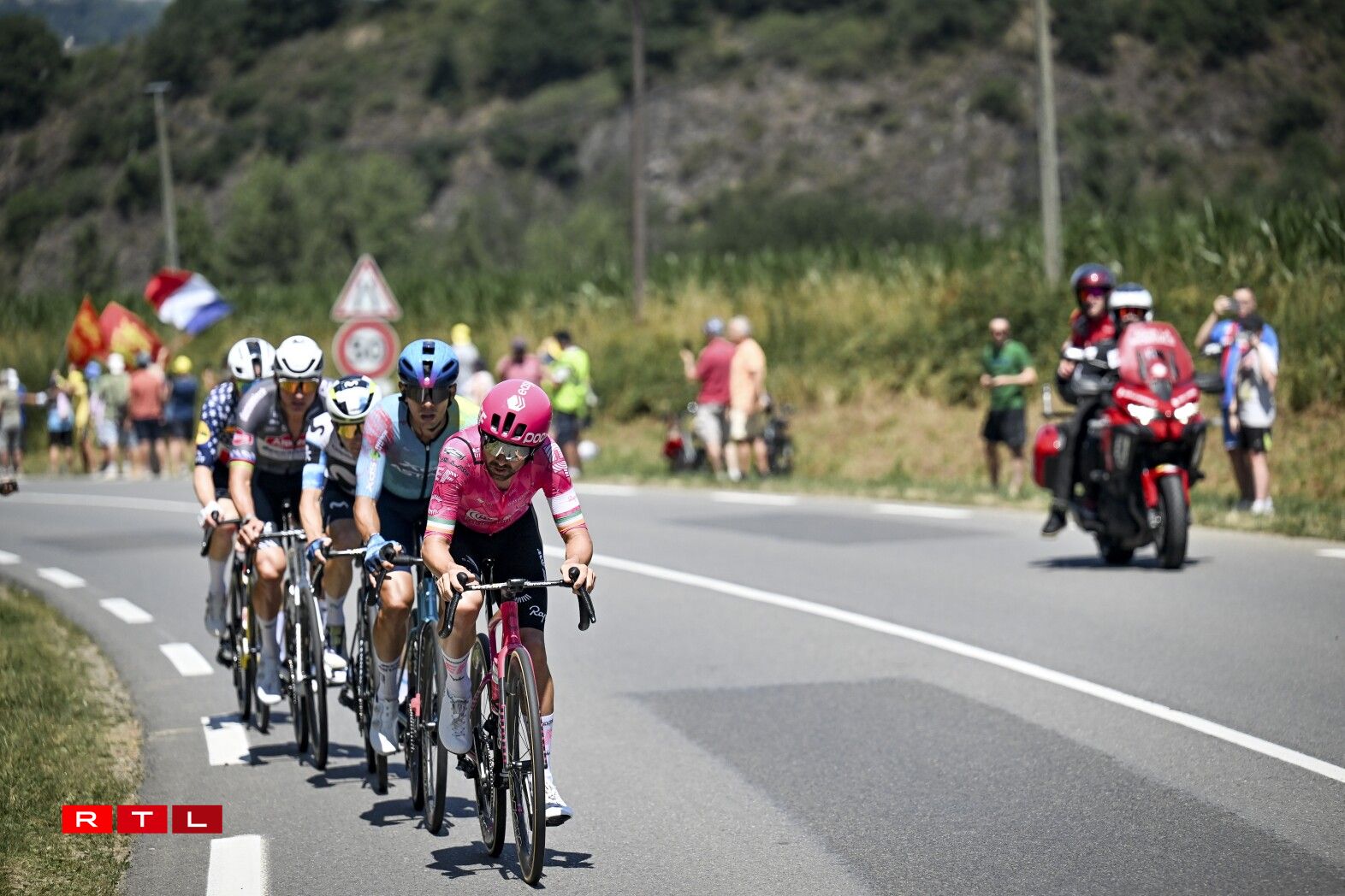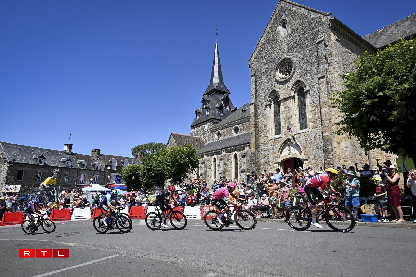 Déi gutt Echappée huet sech no der Côte de la Rançonnière forméiert. An dat mam Mathieu van der Poel, Quinn Simmons, Ben Healy, William Barta an Harold Tejada. Méi spéit sinn och nach den Eddie Dunbar, de Simon Yates an de Michael Storer dobäi komm. Et huet awer bis eng 100 Kilometer virun der Arrivée gedauert, bis déi Echappée och den definitive Bon de Sortie vum Peloton krut. Hir Avance ass bis op 4 Minutten a 50 Sekonnen eropgaangen. D‘Ekipp vum Maillot Jaune Tadej Pogacar (UAE) huet am Peloton fir den Tempo gesuergt.