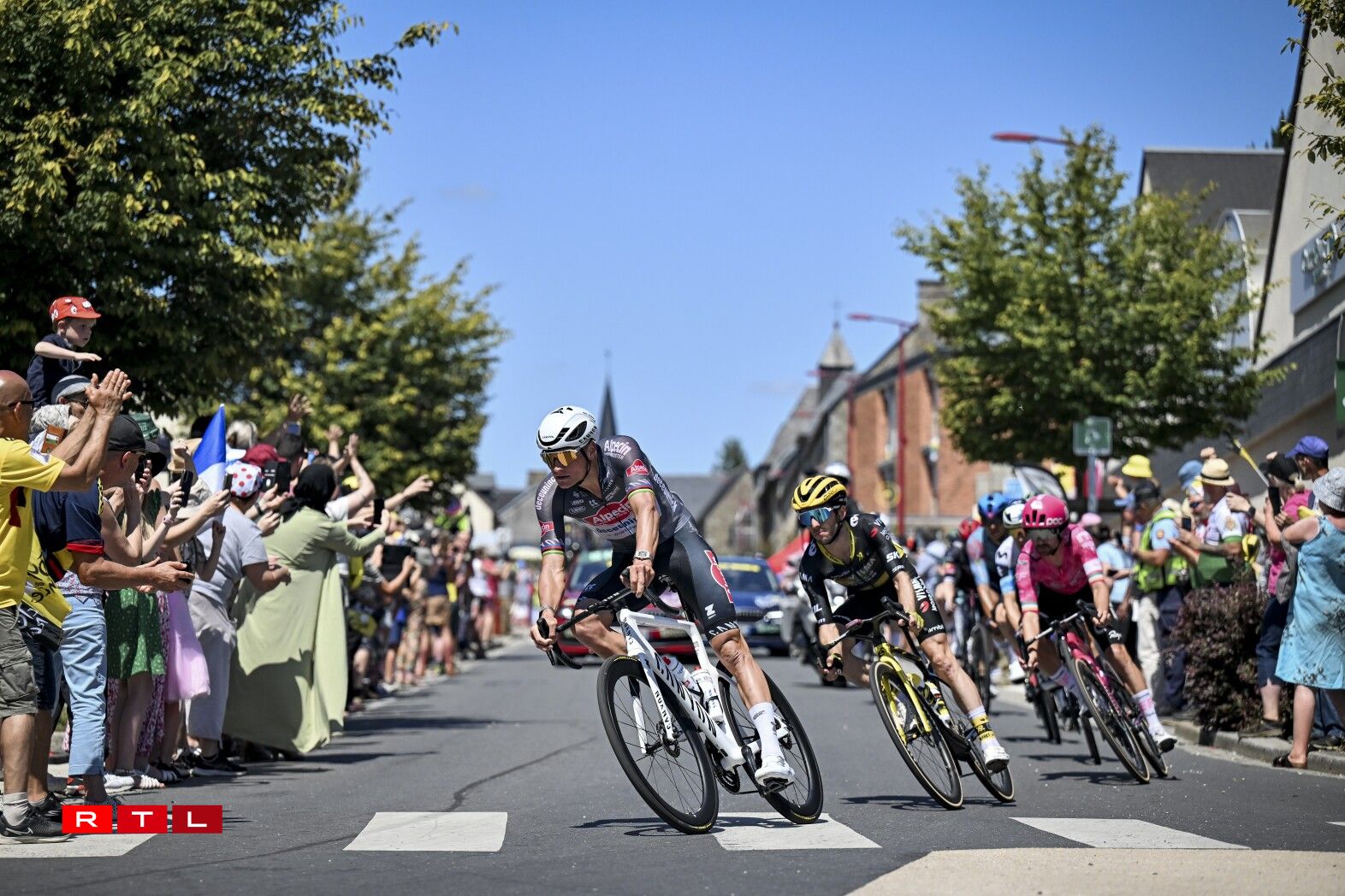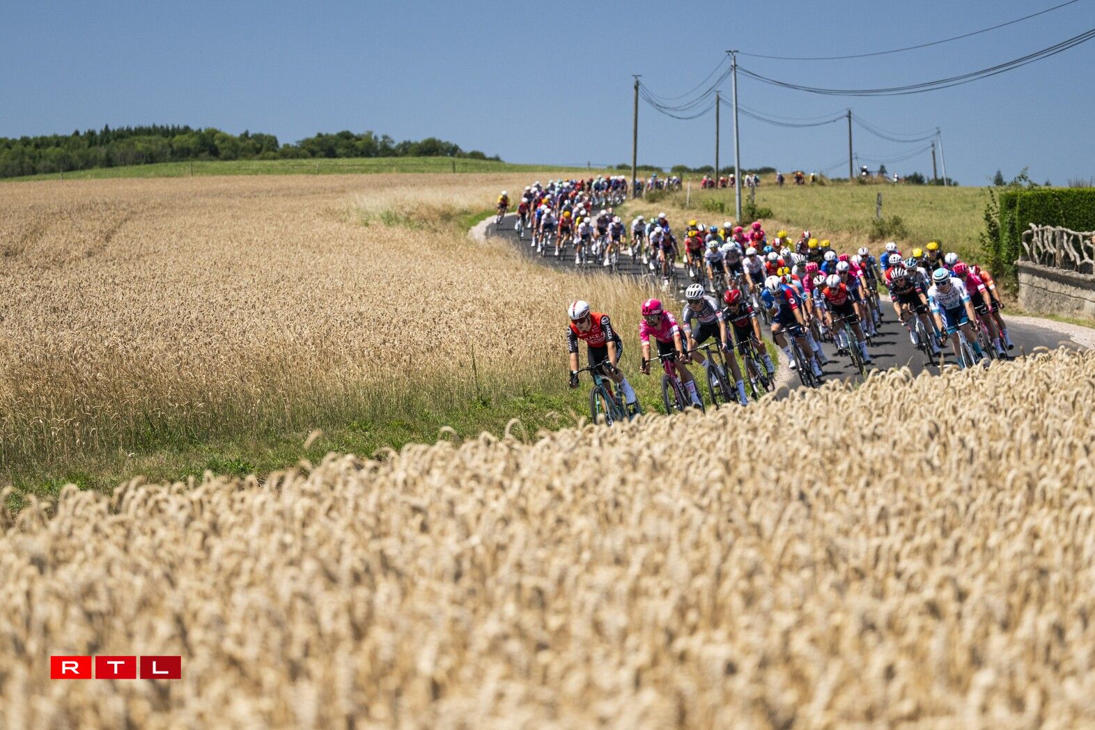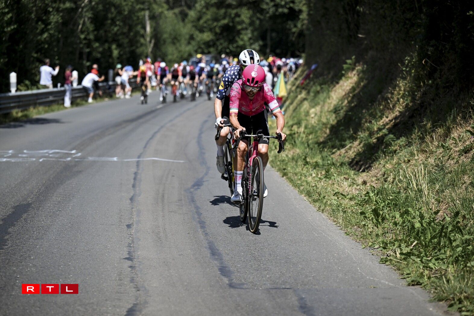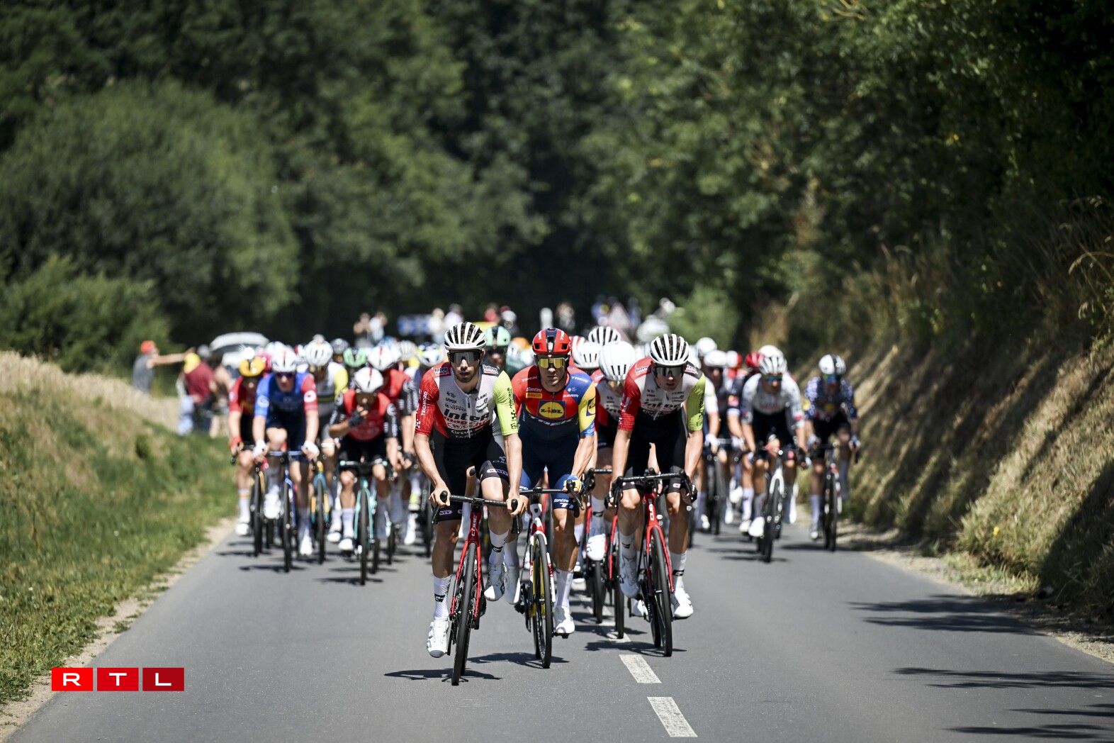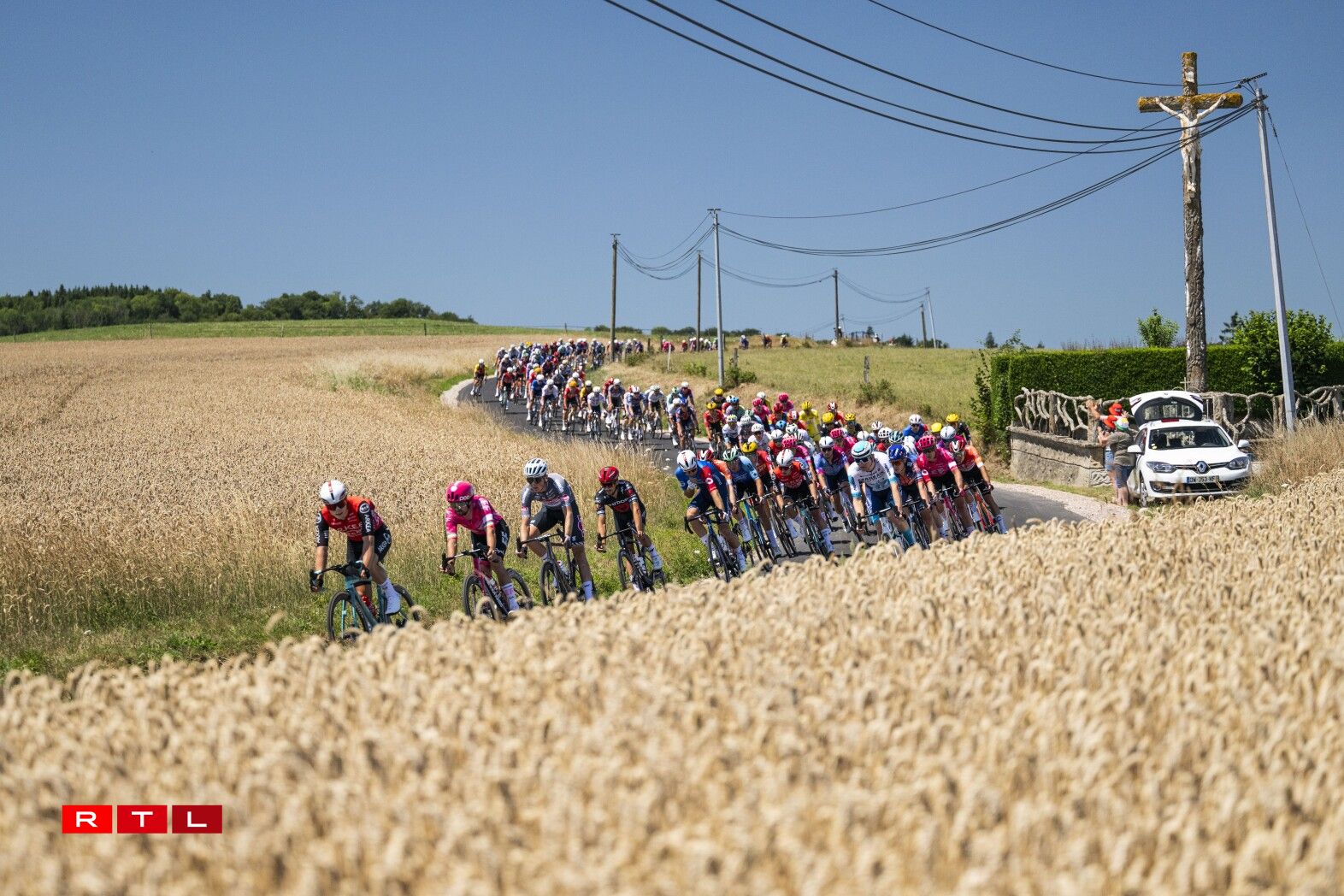 Déi gutt Echappée huet sech no der Côte de la Rançonnière forméiert. An dat mam Mathieu van der Poel, Quinn Simmons, Ben Healy, William Barta an Harold Tejada. Méi spéit sinn och nach den Eddie Dunbar, de Simon Yates an de Michael Storer dobäi komm. Et huet awer bis eng 100 Kilometer virun der Arrivée gedauert, bis déi Echappée och den definitive Bon de Sortie vum Peloton krut. Hir Avance ass bis op 4 Minutten a 50 Sekonnen eropgaangen. D‘Ekipp vum Maillot Jaune Tadej Pogacar (UAE) huet am Peloton fir den Tempo gesuergt.