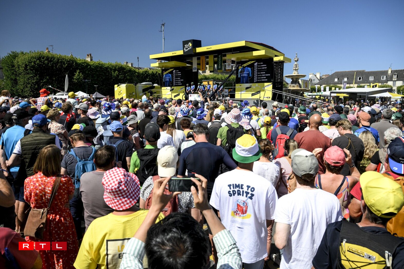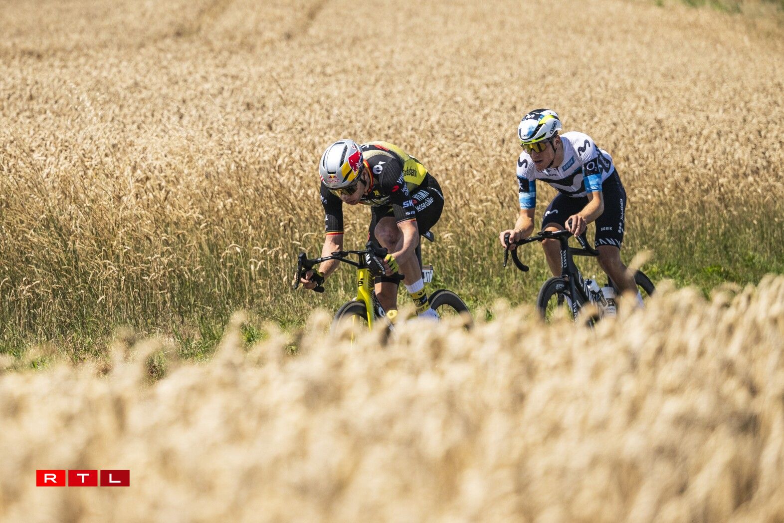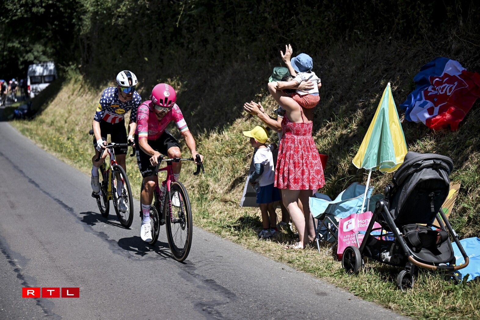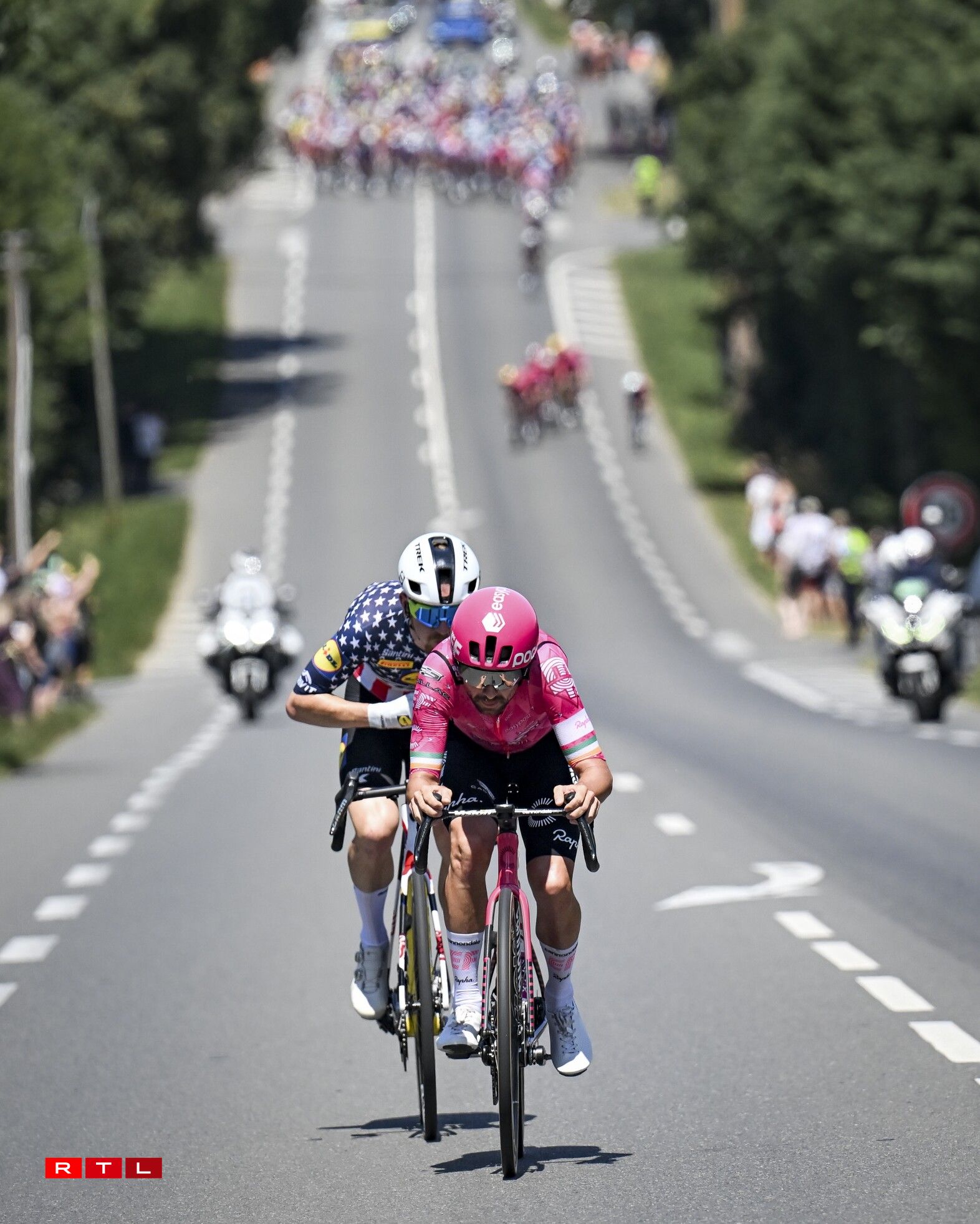 Déi gutt Echappée huet sech no der Côte de la Rançonnière forméiert. An dat mam Mathieu van der Poel, Quinn Simmons, Ben Healy, William Barta an Harold Tejada. Méi spéit sinn och nach den Eddie Dunbar, de Simon Yates an de Michael Storer dobäi komm. Et huet awer bis eng 100 Kilometer virun der Arrivée gedauert, bis déi Echappée och den definitive Bon de Sortie vum Peloton krut. Hir Avance ass bis op 4 Minutten a 50 Sekonnen eropgaangen. D‘Ekipp vum Maillot Jaune Tadej Pogacar (UAE) huet am Peloton fir den Tempo gesuergt.